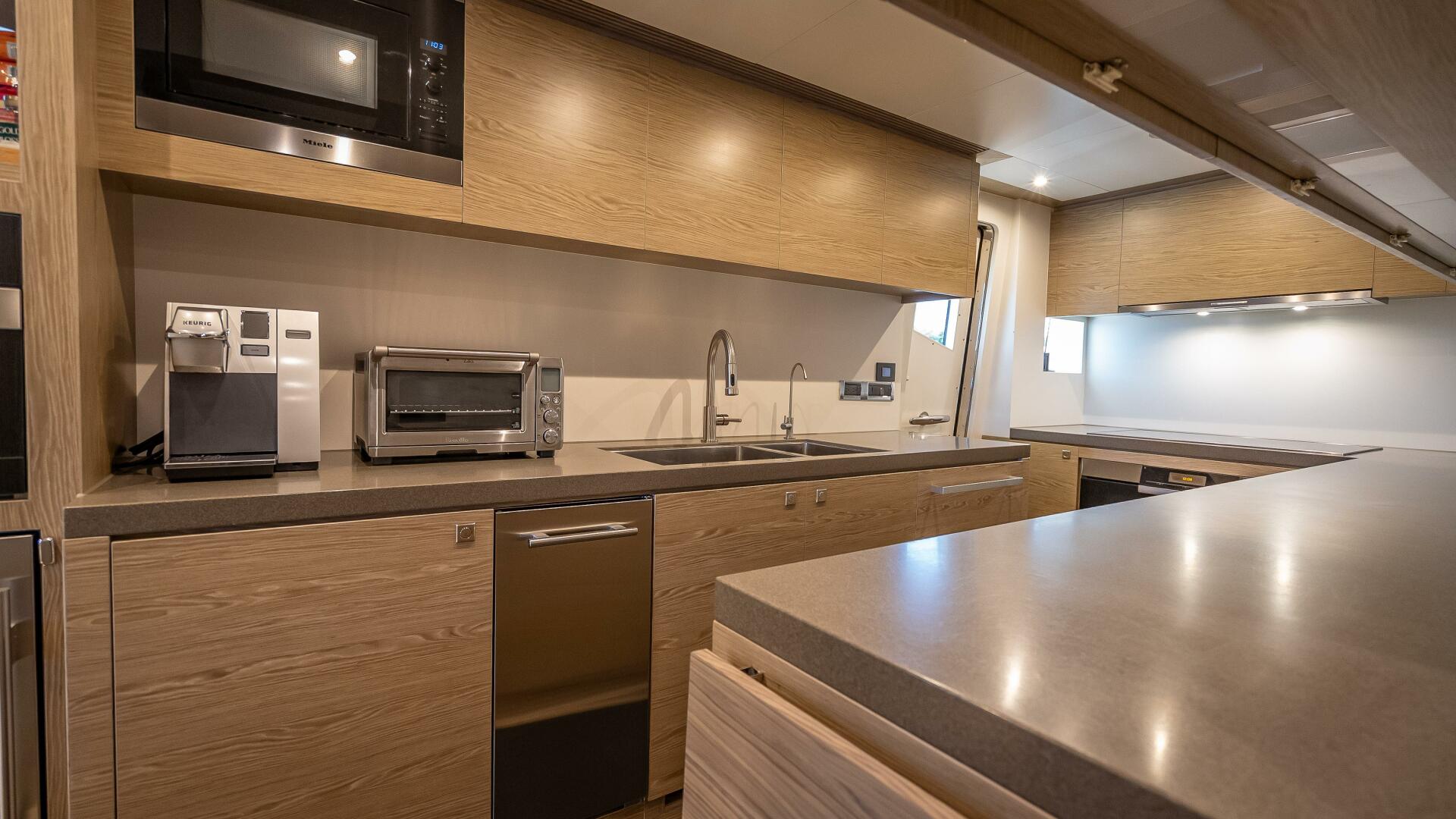 - Galley: The professional-grade galley is fully equipped, perfect for chefs and crew to prepare gourmet meals.