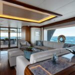 The OA 120 Beach Club is a unique feature that sets the yacht apart. This aft area, often characterized as an ‘oceanic oasis,’ offers an unparalleled encounter with the sea. The Beach Club is a spacious lounge when at anchor. Designed as a distinct social area, it offers a remarkable setting for relaxation and entertainment alike.