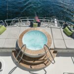 The OA 120 features a spacious sundeck that offers breathtaking views and is perfect for entertaining. Equipped with an elevated spa pool, bar, and comfortable seating, this area is ideal for those who enjoy soaking in the sun while sipping on their favorite drink. Whether you’re an admirer of golden-hour sunsets or a wine connoisseur, the sundeck provides the perfect setting for you to unwind and relax.
