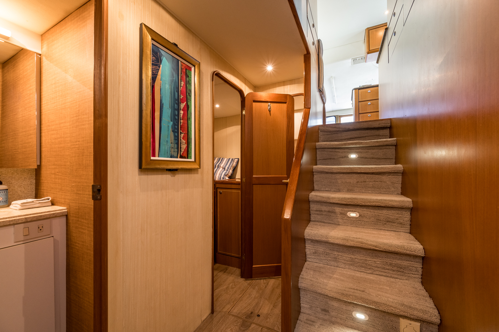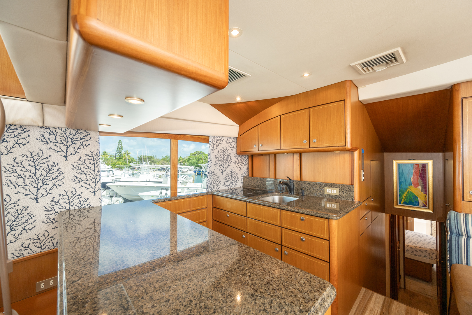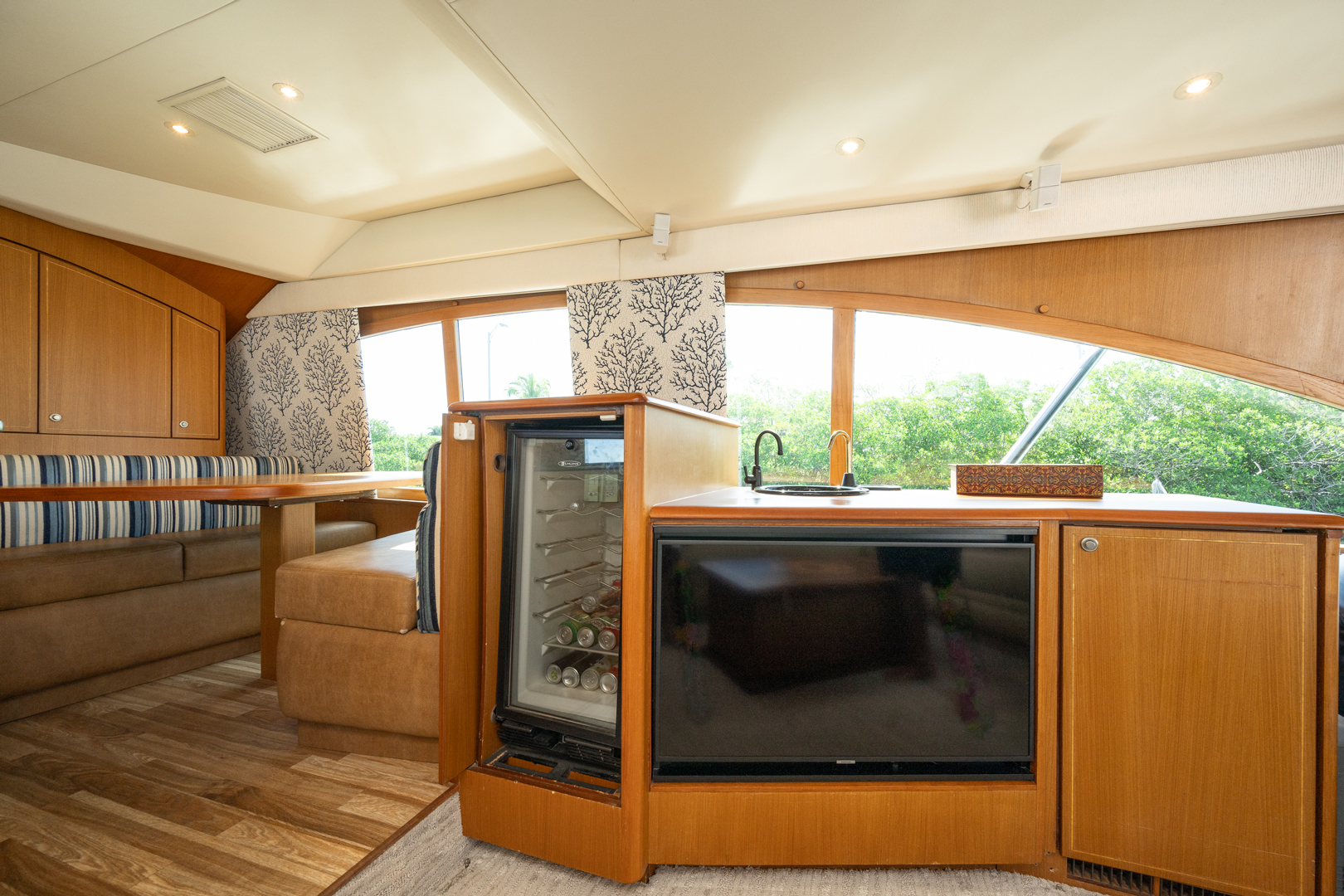 Unwind in Comfort: Accommodate up to 6 guests in the yacht’s 4 luxurious staterooms, each offering premium amenities. The master beam-to-beam suite provides a private haven, complete with a Queen bed and breathtaking views.