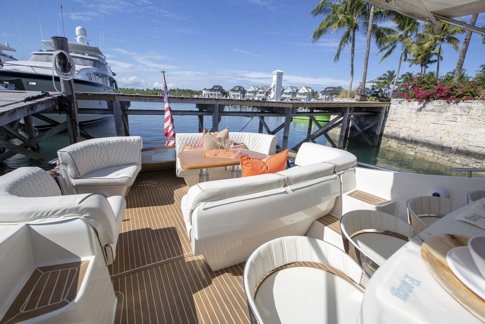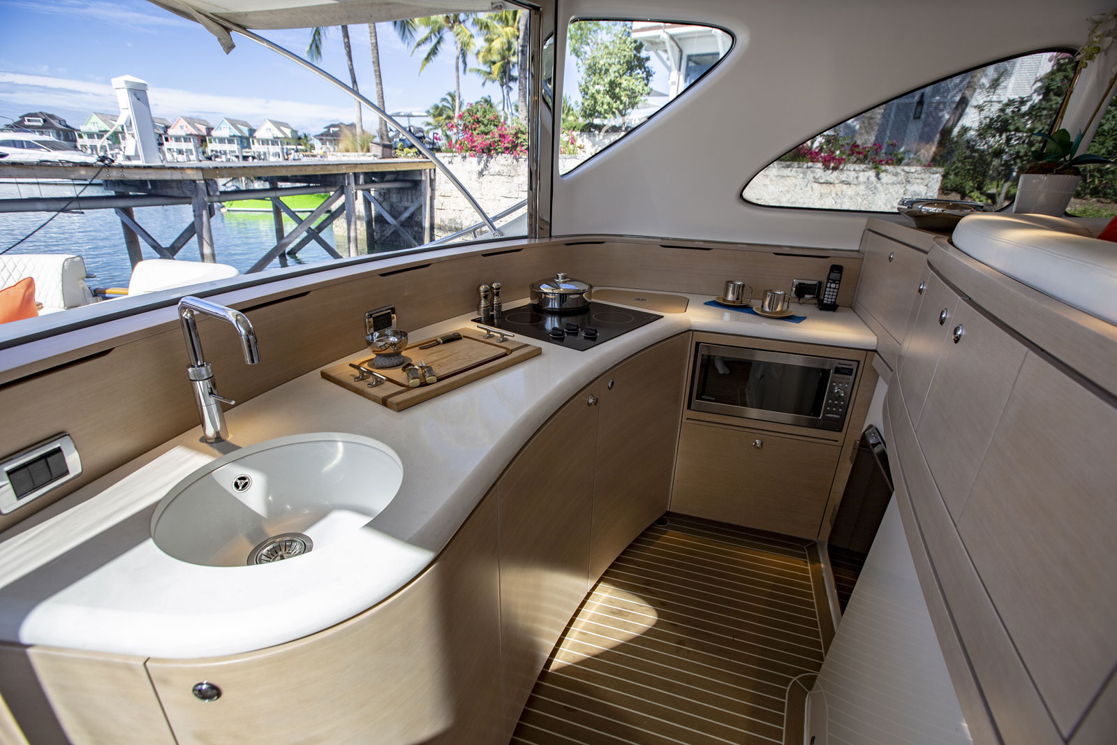A gem in the yachting world, Fancy stretches 55 feet with a beam of 16’4″ and a draft of 5’0″. Two 900-horsepower Volvo Penta diesel engines power it, ensuring a smooth cruise at 32 knots and a top speed of 38 knots. With an impressive range of 400 nautical miles, it’s perfect for amazing journeys.