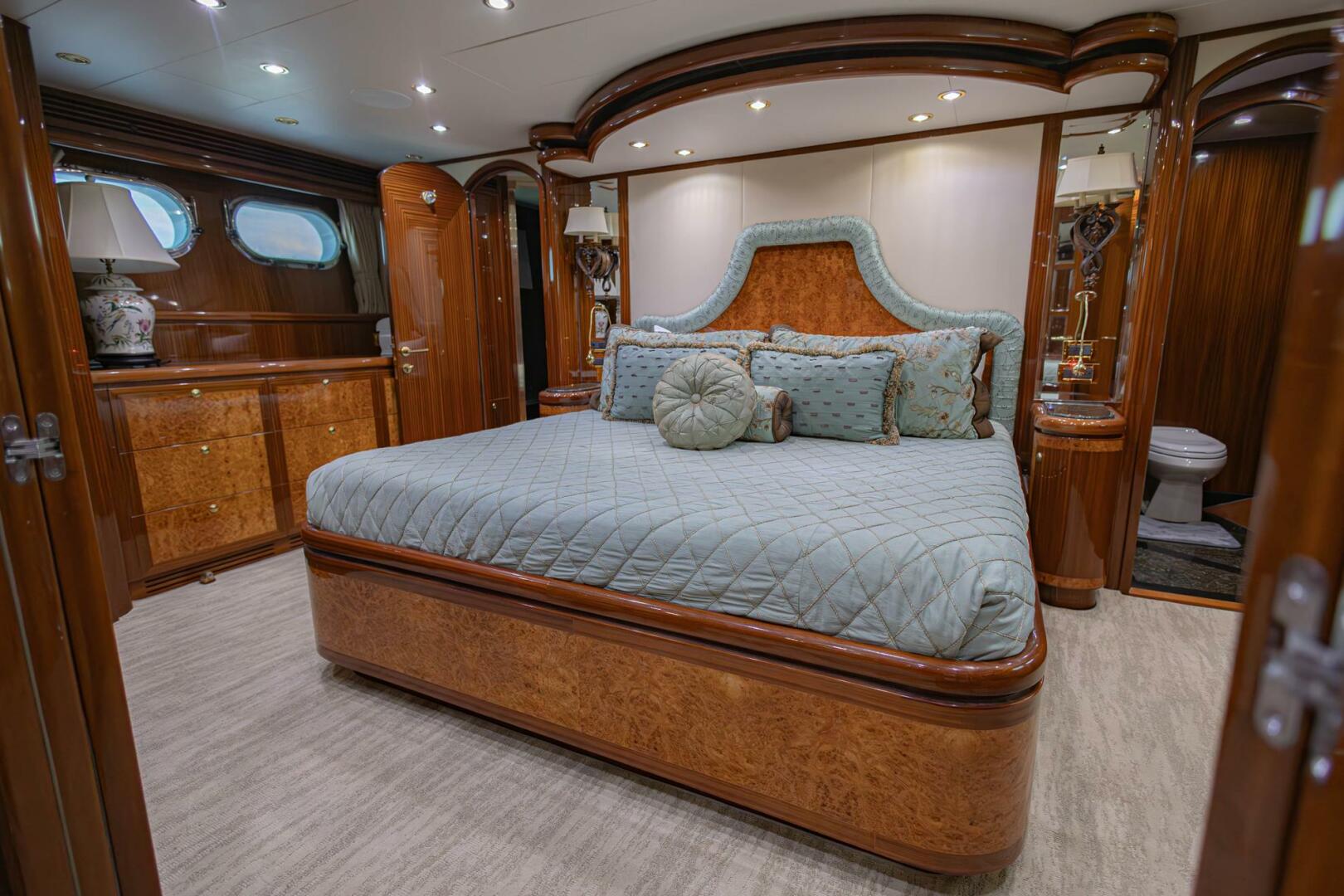 The full-beam master stateroom provides generous space, storage, and a private en-suite head. It feels more like a small apartment than a traditional yacht cabin — ideal for owners who plan to spend extended time onboard.