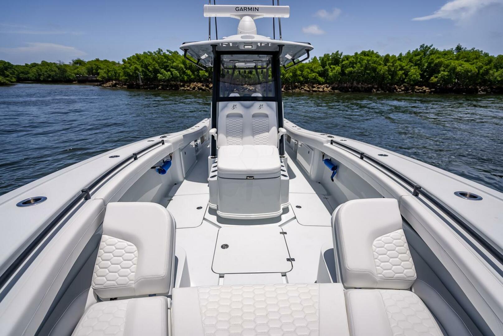 The 39 Yellowfin 2025 – 39 Offshore is designed for serious offshore fishing adventures. It comes with quad Mercury 400 V10 Verado outboard engines, offering incredible horsepower to cut through waves effortlessly and quickly. Its 39-foot length, wide 11’6” beam provide great stability, even in rough offshore conditions. Yellowfin’s signature stepped-hull design ensures a smooth and comfortable ride. With a generous fuel capacity of 564 gallons, this boat is ready for extended trips without frequent refueling. It also features one guest head, adding convenience and comfort for all on board.