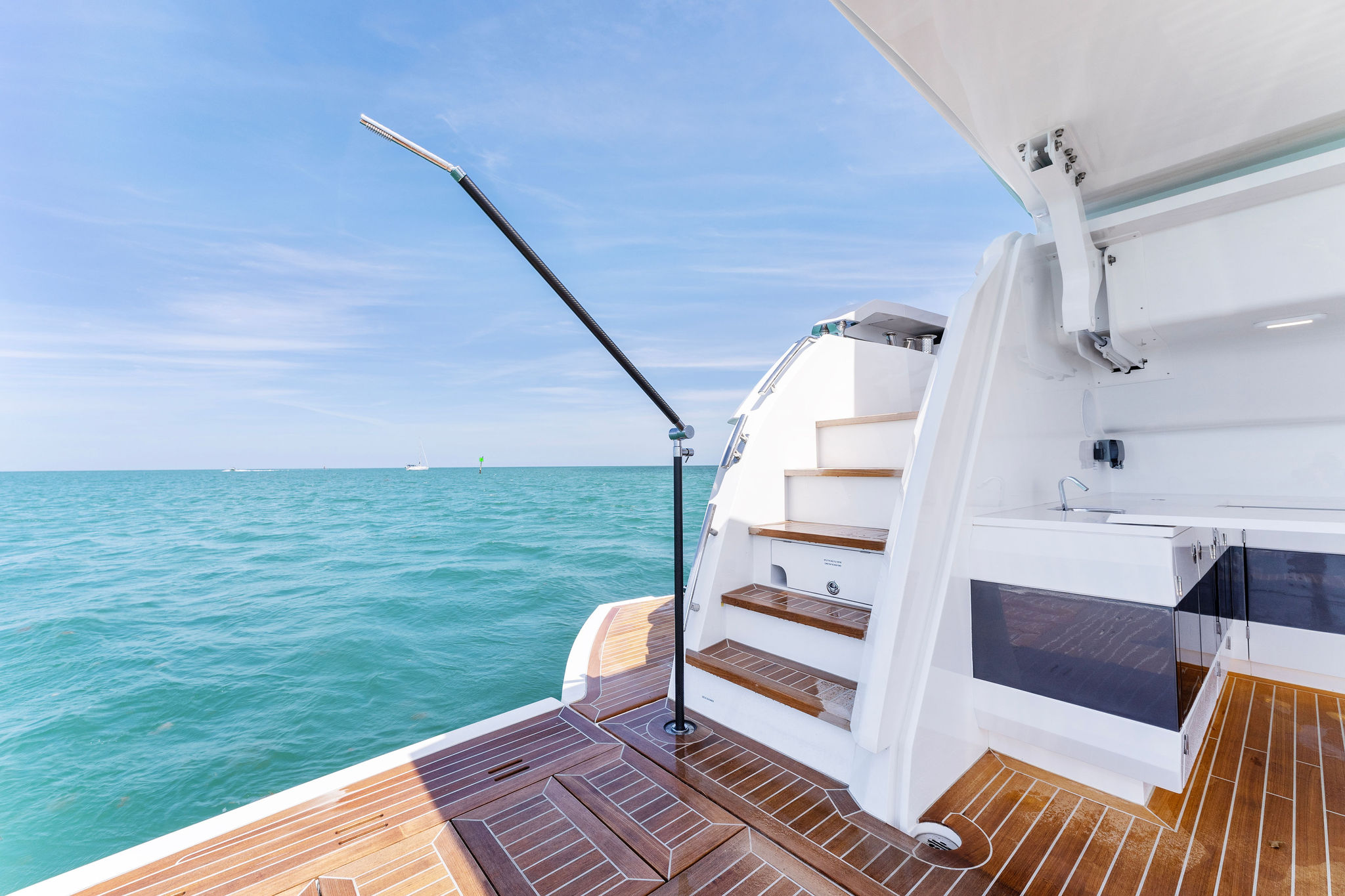 The beach club is a special feature that sets the Pearl 95 apart from other yachts on the market. It includes plenty of space for keeping a tender and a jet ski. So, you can make the most of your time on the water.