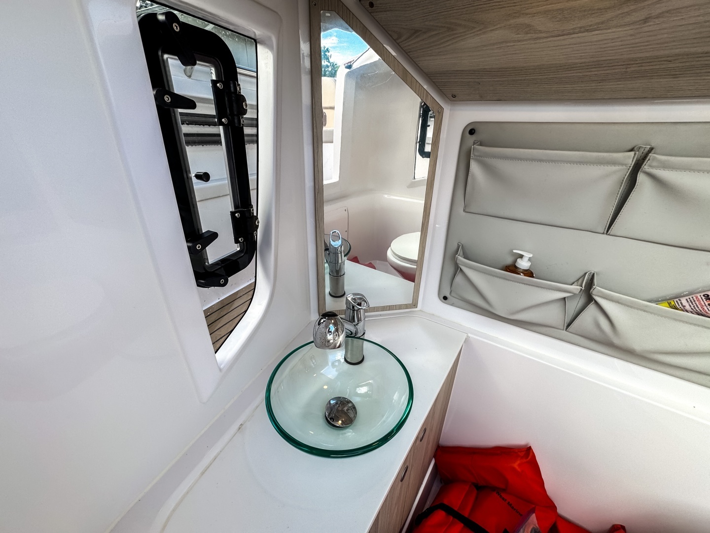 - Console cabin as storage space with hinged side windows