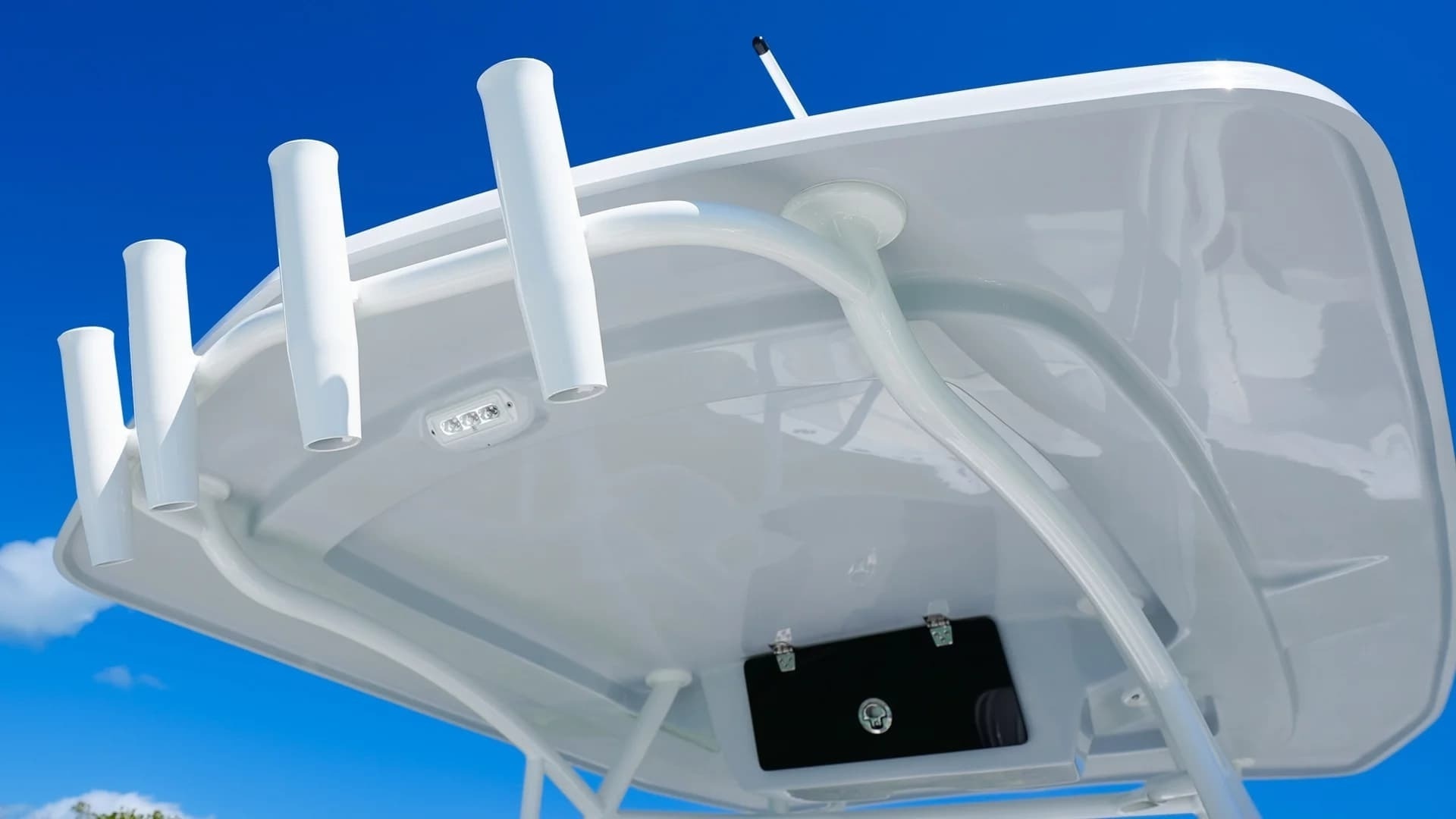 An all-composite hull and deck ensures rugged durability and efficient performance offshore. Designed to enhance buoyancy and increase structural integrity, the foam filled hull reduces weight and ensures a safer, smoother ride.