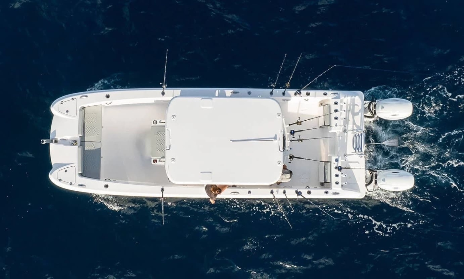 - EVA decking – bow floor, fish box lids and anti-fatigue helm pad