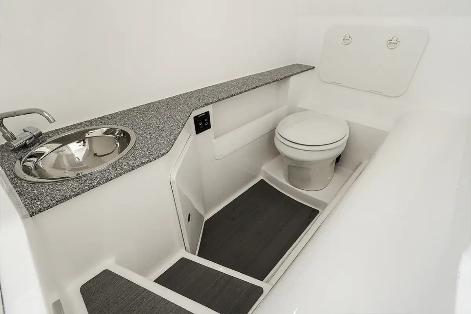 The high-tech helm has been reimagined to navigate expeditions with ease - a digital switching system controls onboard electrical and electronic systems: lighting, navigation lights, horns, entertainment, and security systems, together with a phone app to fit your system.