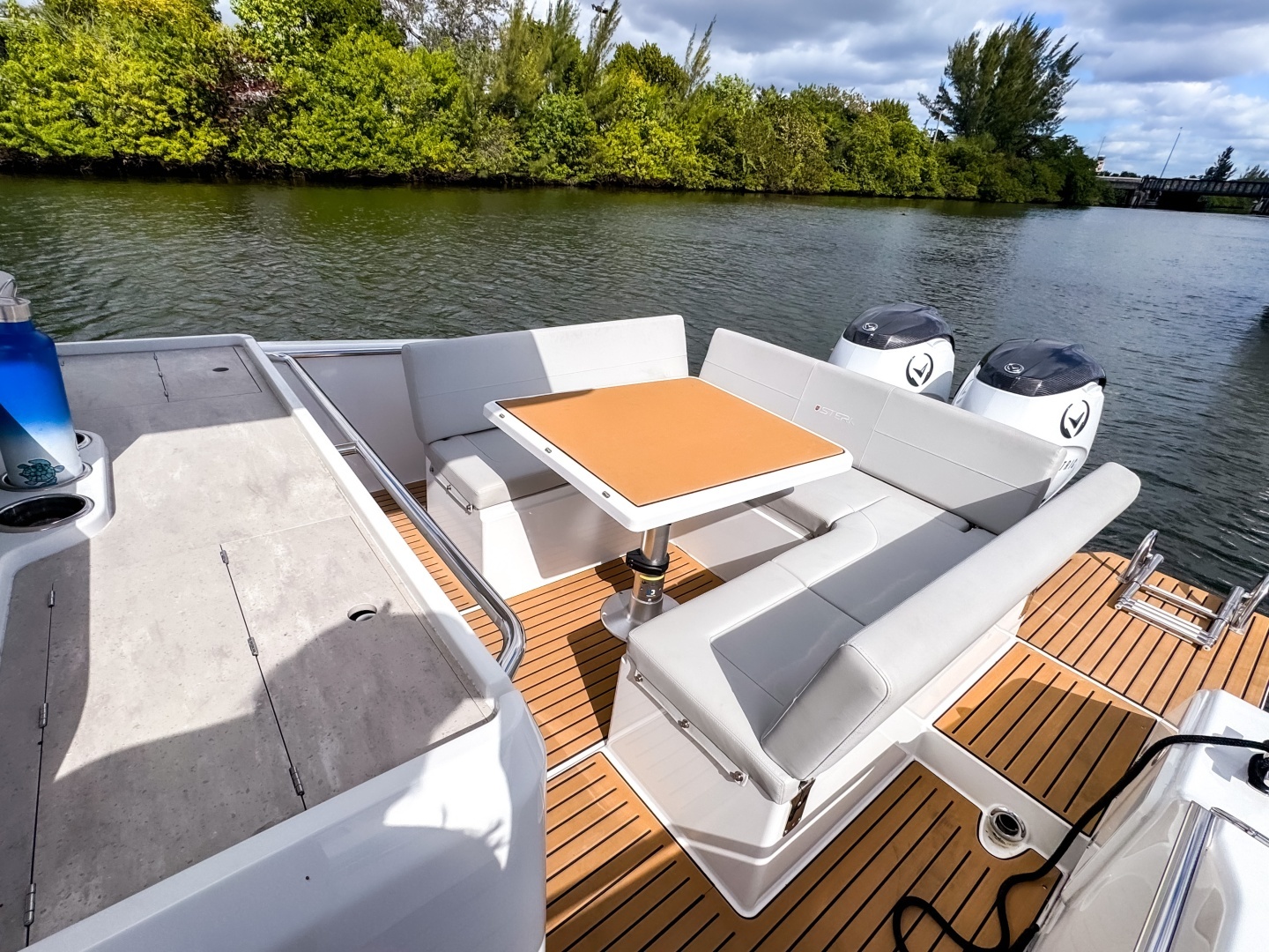 - Large aft platform and generous storage space in lockers under the bar and seating.