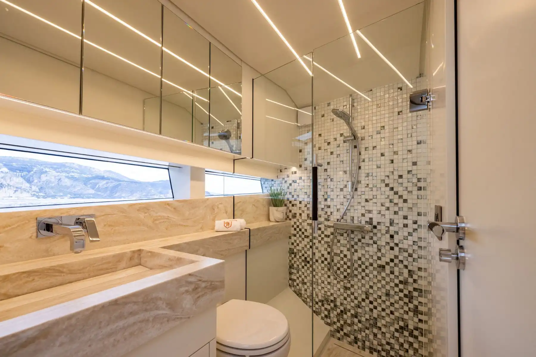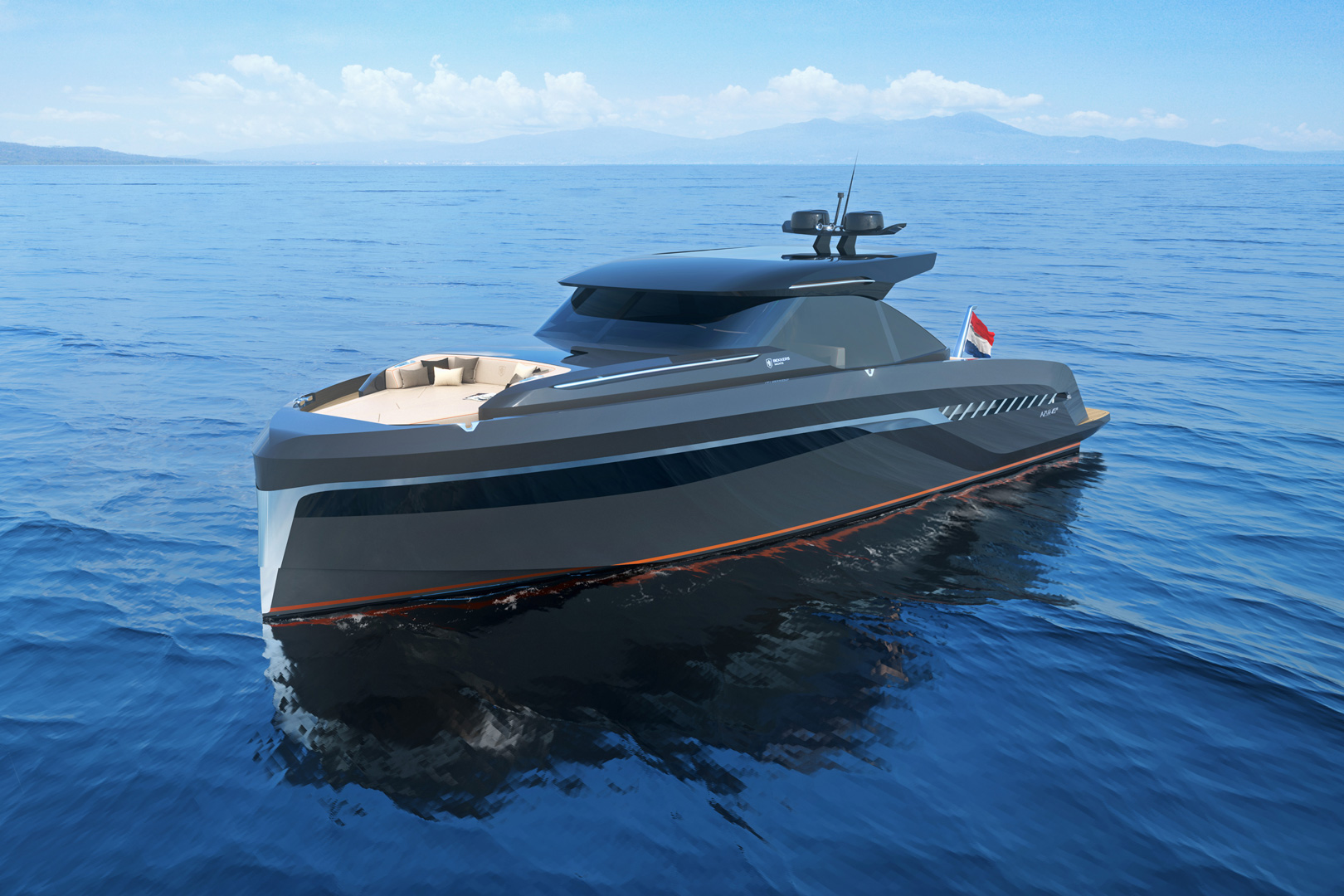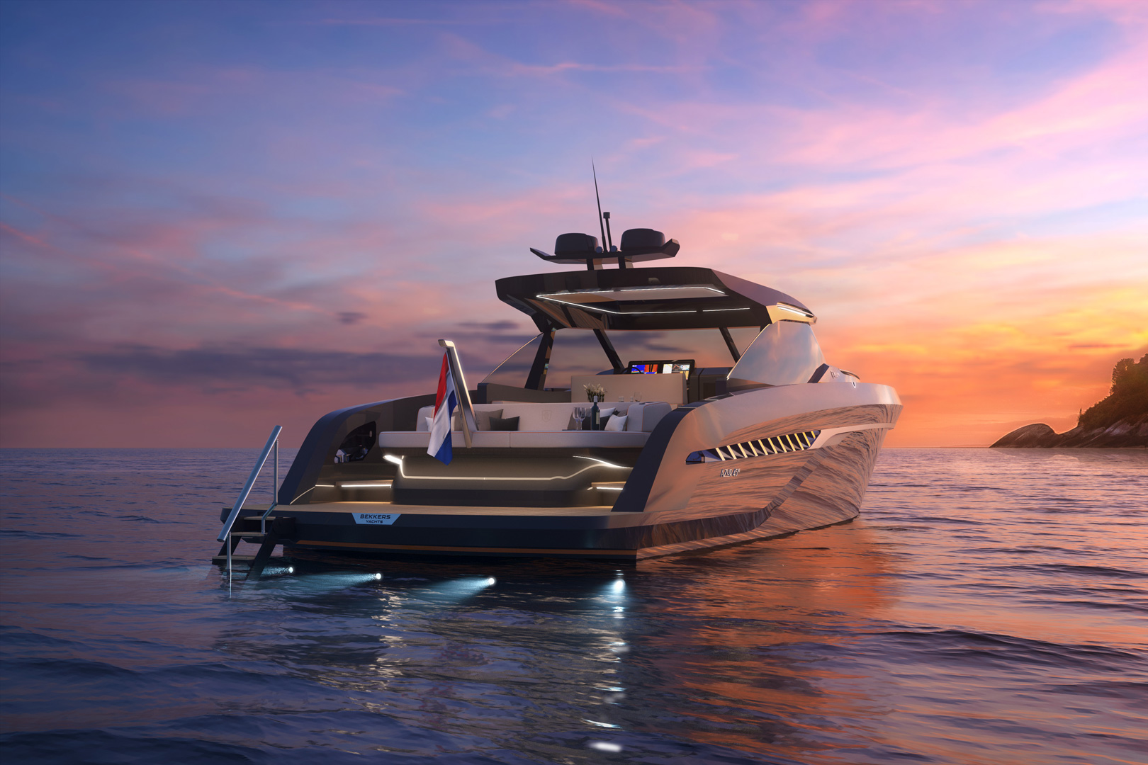 Sporty, luxurious, timeless, without concessions and from superyacht standards: that is the design of the Azur 45HT. The design was made by René van der Velden. The result is the ultimate weekend yacht with a focus on indoor as well as outdoor space. Thanks to the aluminum construction, each Bekkers yacht is customizable. From the exterior to the interior.
