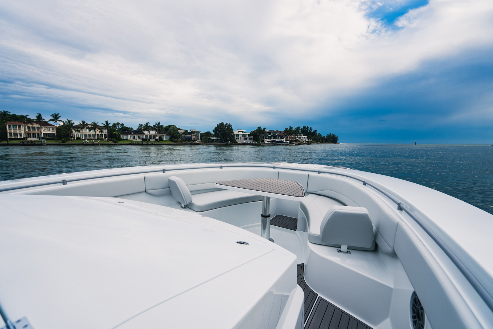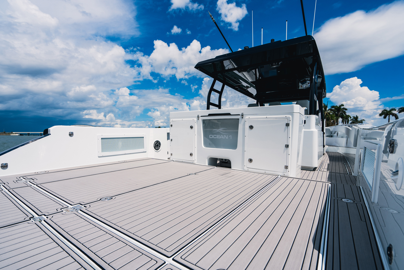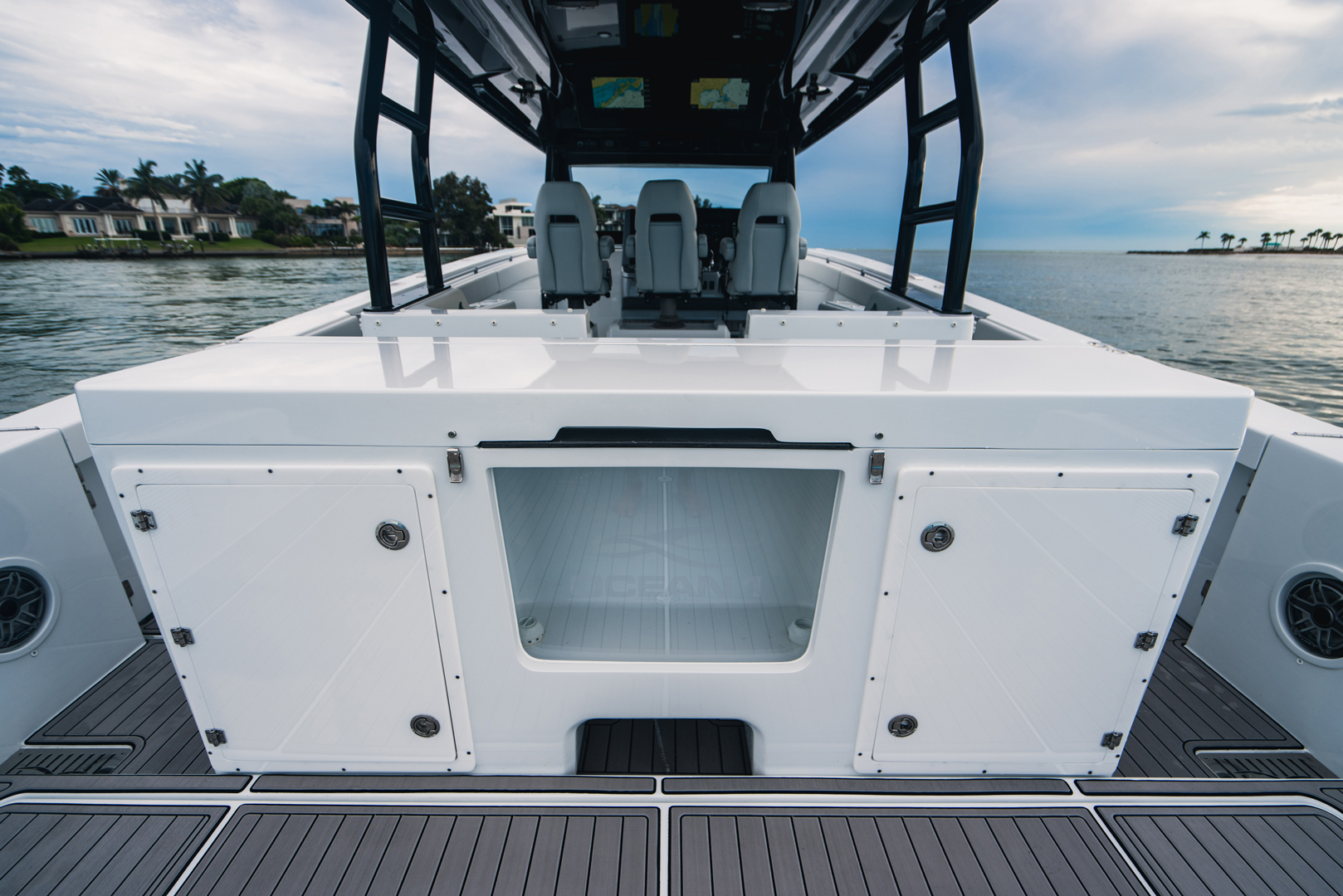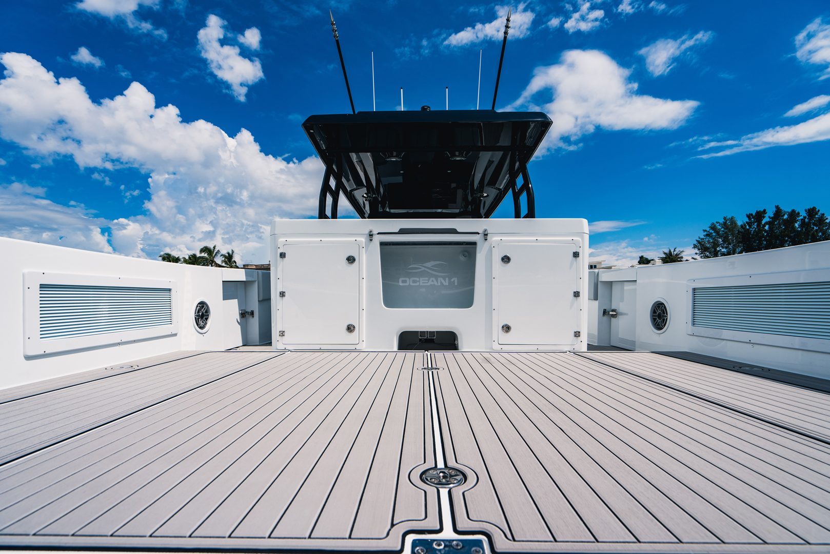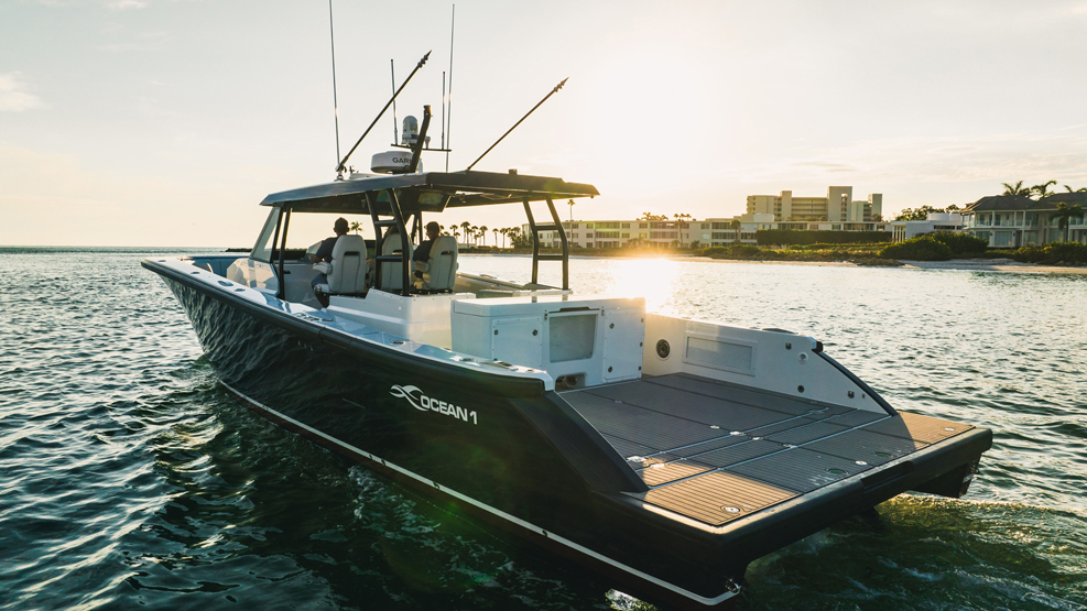 Presenting the HALO 470, flagship of the OCEAN 1 line. At 47′, this head turner with gorgeous sheer line and classic styling is our largest boat to date. Designed to be a robust and versatile luxury super console, the HALO 470 is ideally suited for all boating lifestyles including luxury day boating, sportfishing, diving or as a yacht tender. And thanks to her optimized twin step hull design with a max HP rating of 2400, the HALO 470 offers top of the line comfort and performance with speeds upwards of 70mph!