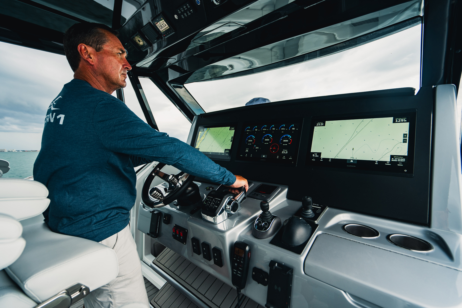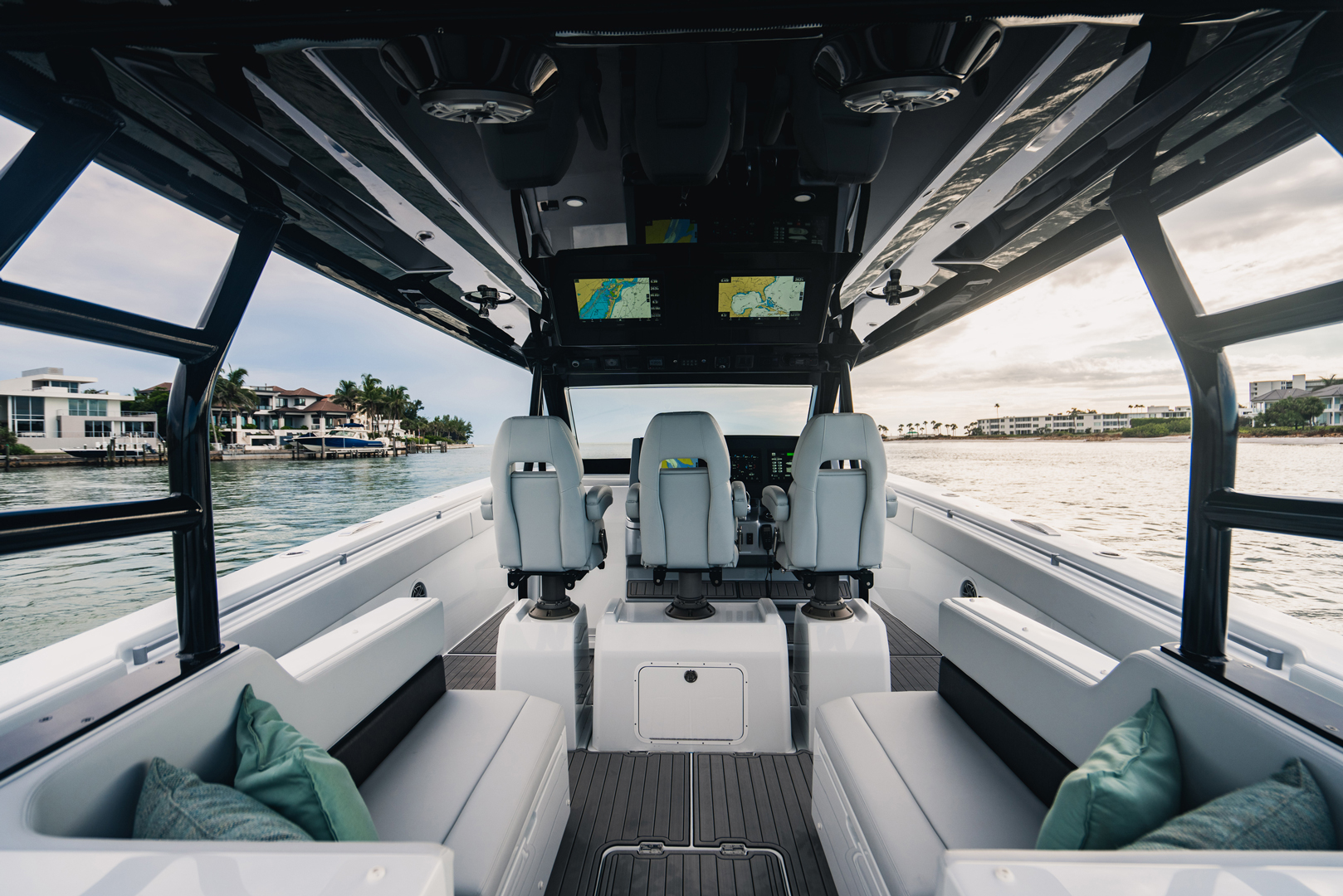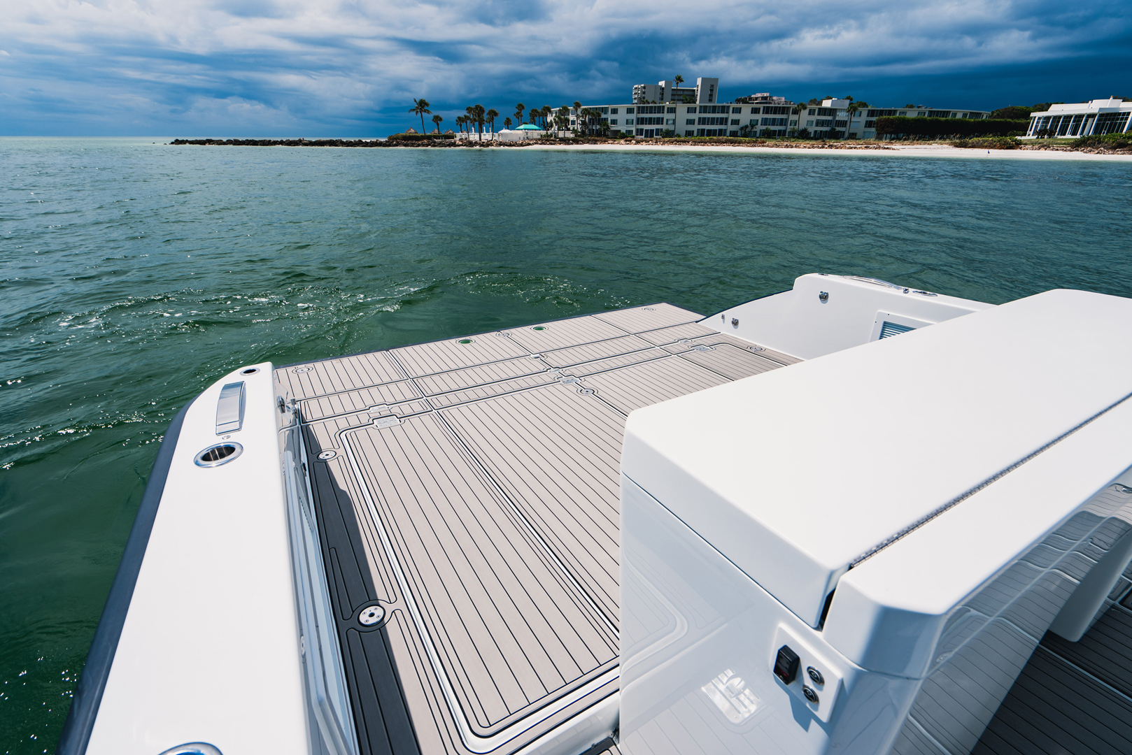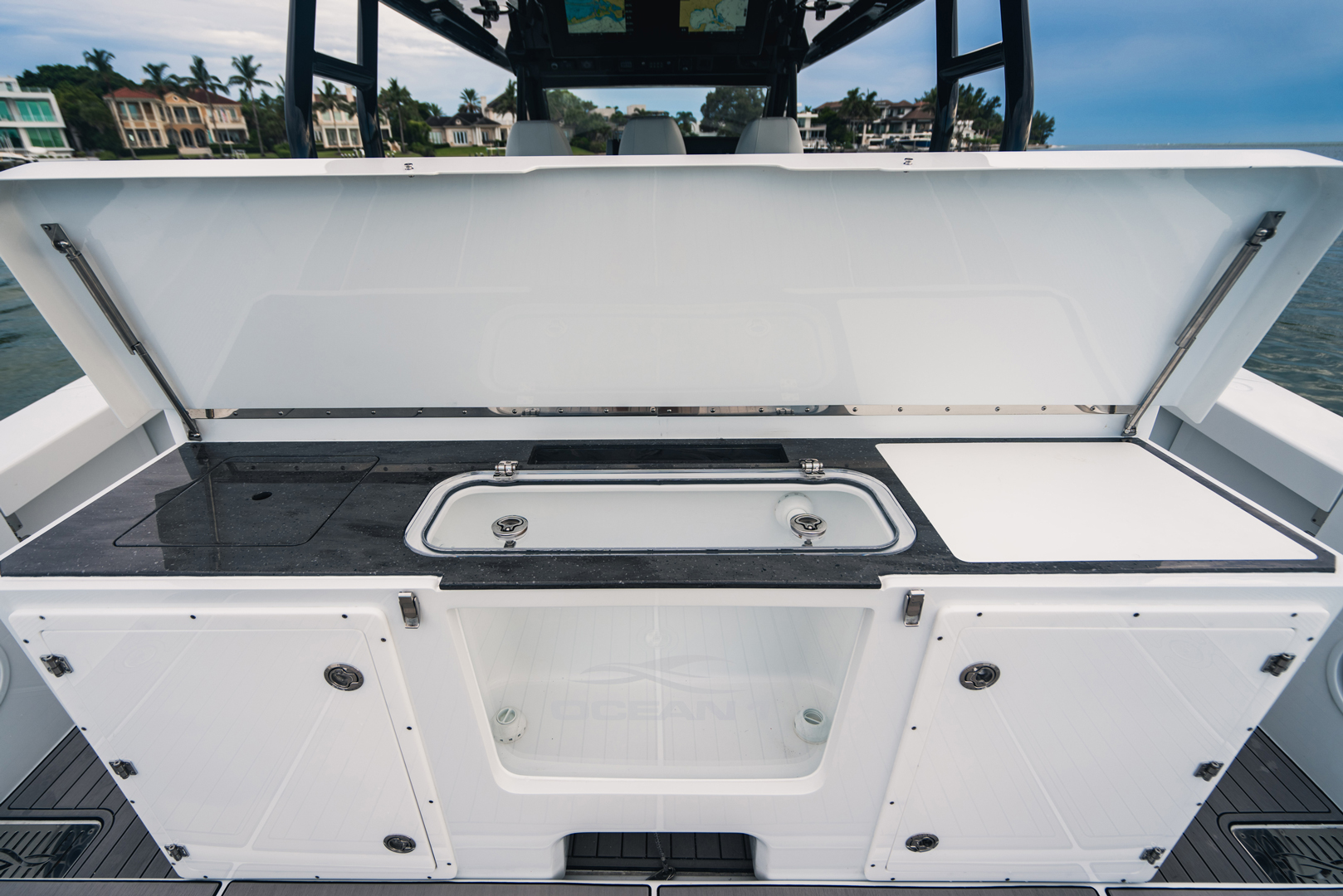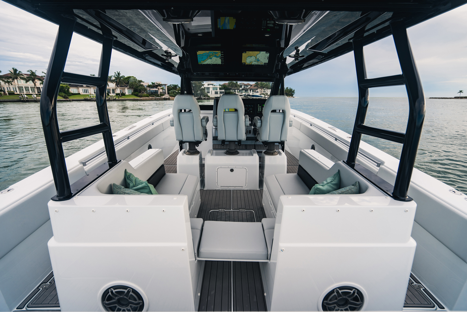 Presenting the HALO 470, flagship of the OCEAN 1 line. At 47′, this head turner with gorgeous sheer line and classic styling is our largest boat to date. Designed to be a robust and versatile luxury super console, the HALO 470 is ideally suited for all boating lifestyles including luxury day boating, sportfishing, diving or as a yacht tender. And thanks to her optimized twin step hull design with a max HP rating of 2400, the HALO 470 offers top of the line comfort and performance with speeds upwards of 70mph!