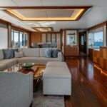 Long Aweighted shines with advanced technology and performance. Powered by twin MTU diesel engines with a combined horsepower of 5,200, it effortlessly reaches speeds nearing 20 knots, with optimal cruising around 14 knots. Its generous fuel capacity of 6,653 gallons and freshwater capacity of 1,378 gallons ensure extended journeys with ease. The pilothouse features advanced Garmin helm technology, including a 8624 Series black box with touchscreen, integrated TimeZero computer, and GRID remote input device. It also includes a Garmin 25kW open-array radar, Furuno RCU-028 radar control, Garmin autopilot GHC20, black box sounder, and marine cameras.