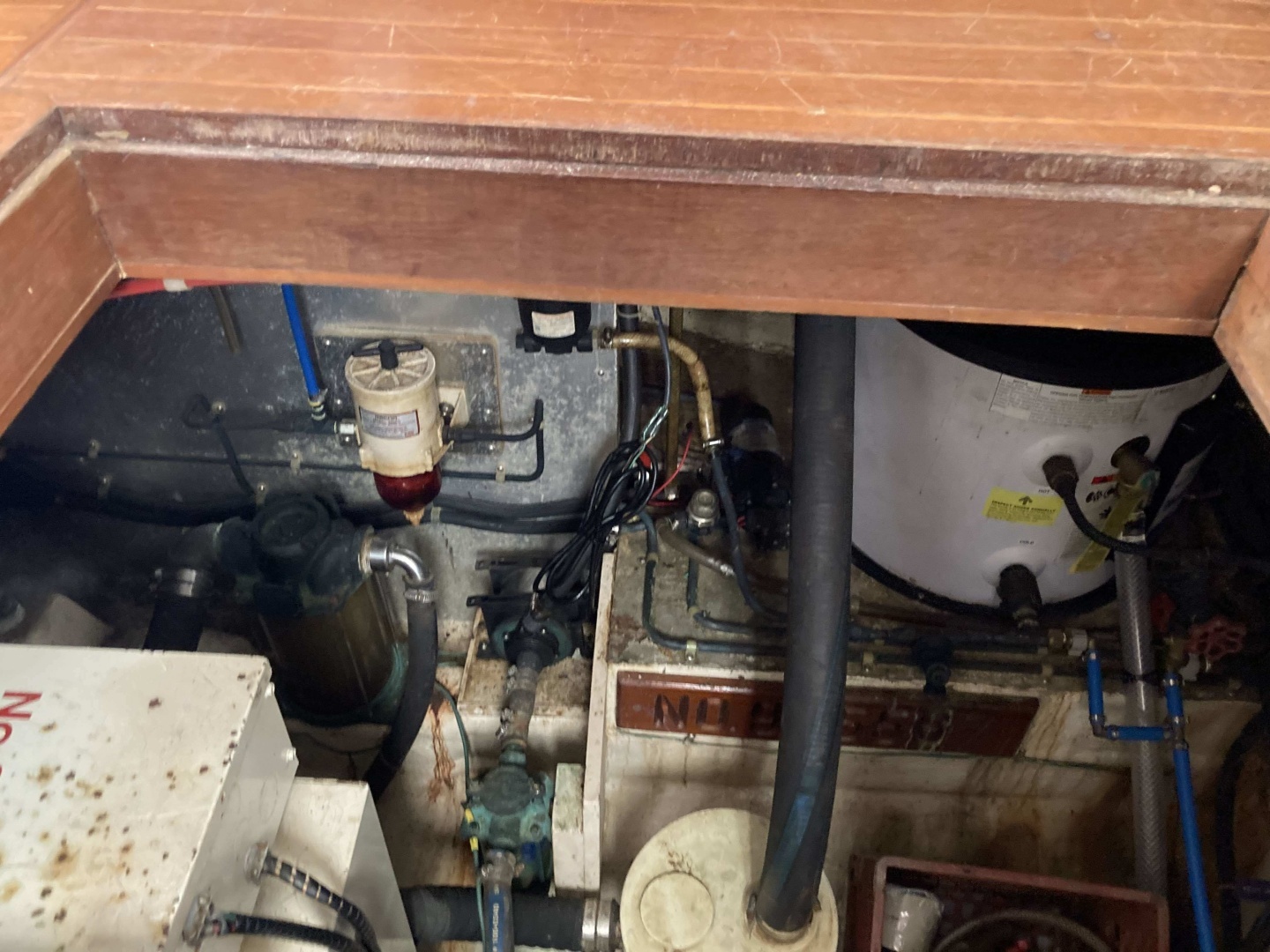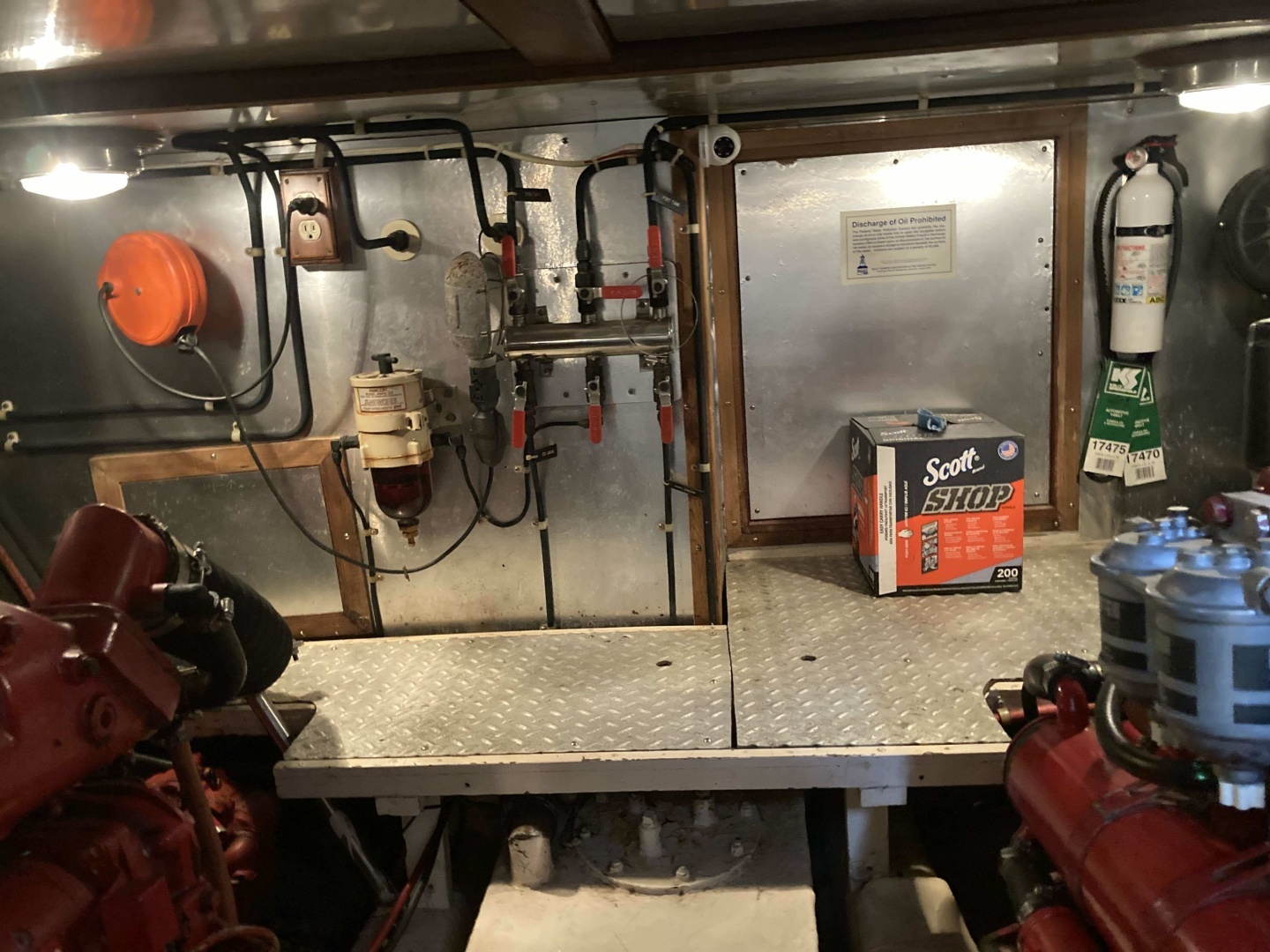 Two 135 HP Ford Lehman diesels.Approximately 2800 hours. Naturally aspirated. No turbo, no after coolers.Full gauges at both helms with Morse controls.Island Drifter cruises at 9knots @ 2000 RPM and burns approximately 4.5 GPH total.One Racor primary per engine.Two secondary filters per engine.Warner Velvet Drive Gear (Ratio - 2.0:1).4 bladed, bronze propellers - 22 x 18 x 1 3/4.