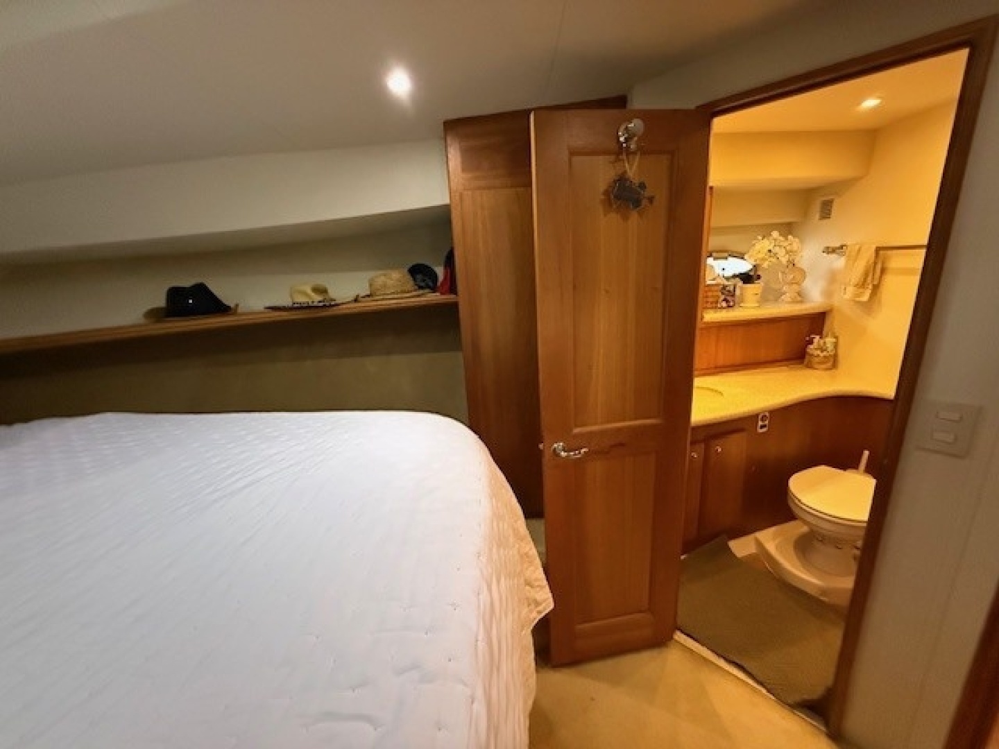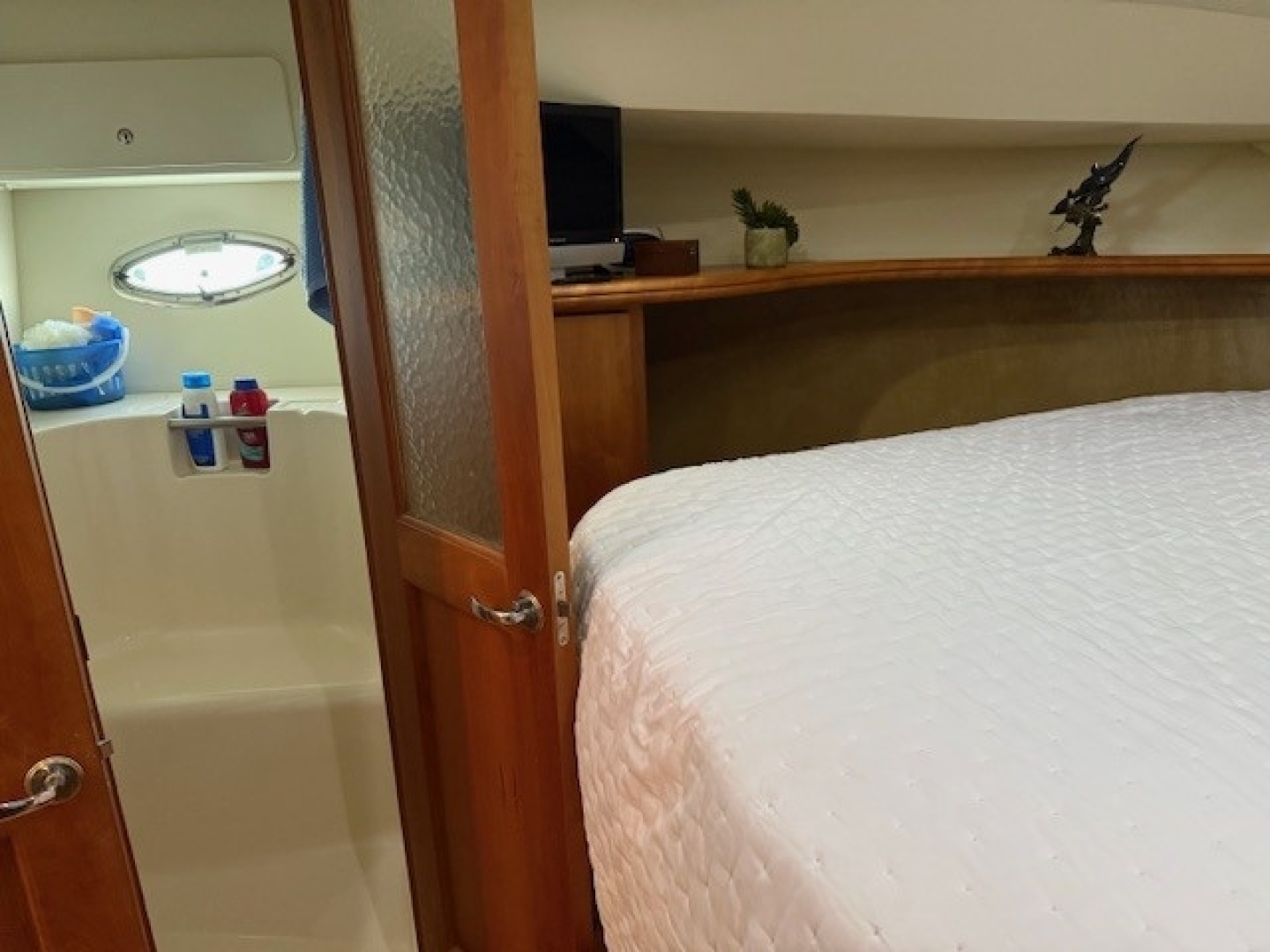 The master stateroom is located all the way forward in the vessel.Notable features: