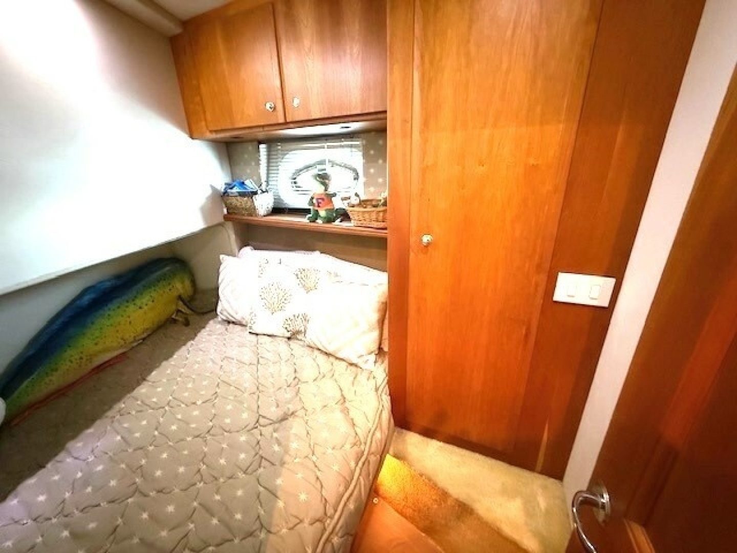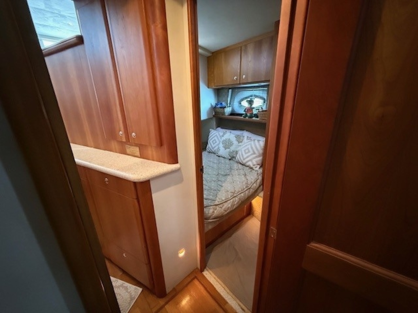 The guest stateroom is located on the port side of the vessel, forward of the galley. Notable features: