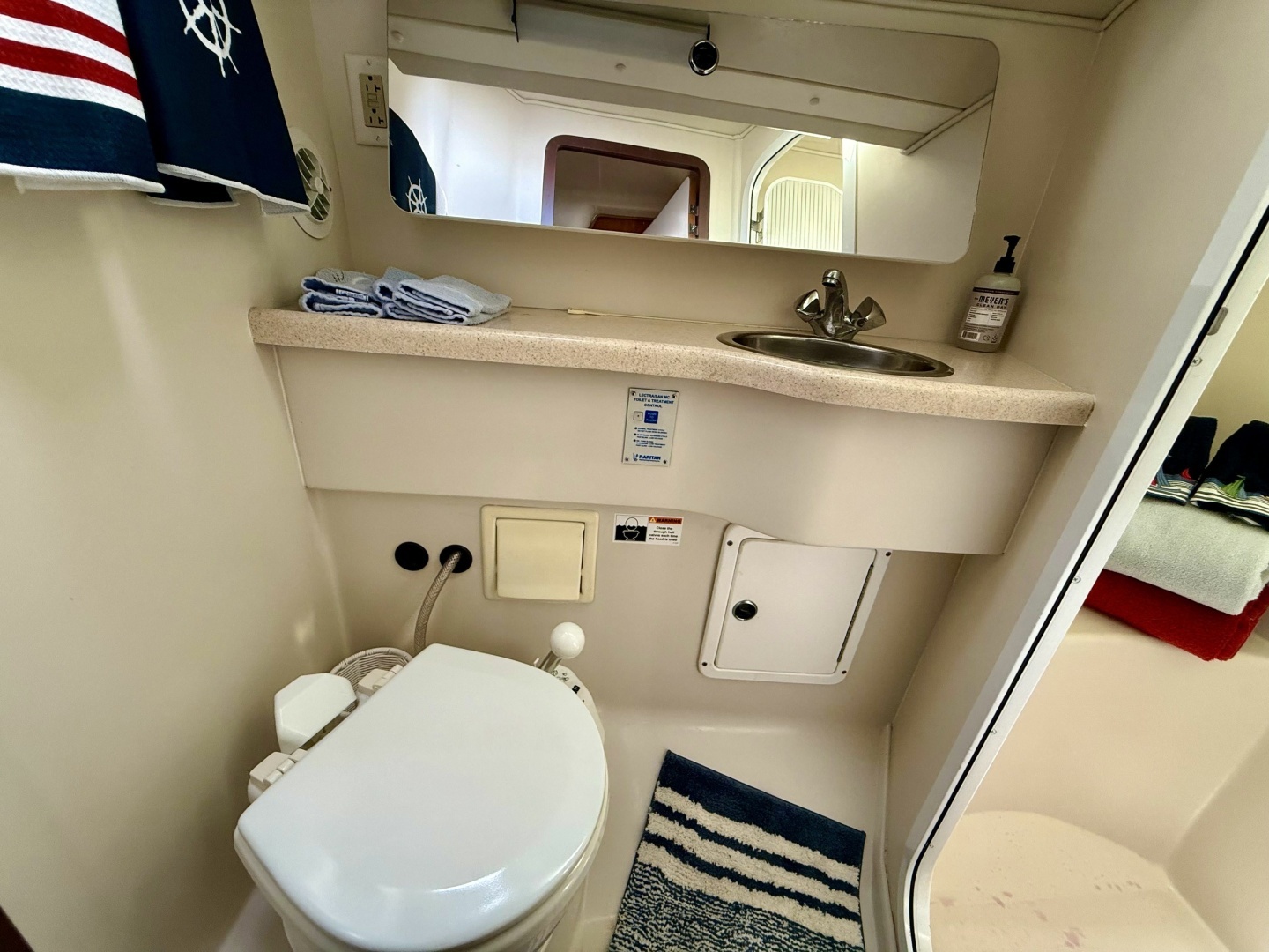 Private VIP head for the owners while cruising with guests and separate showerstall.