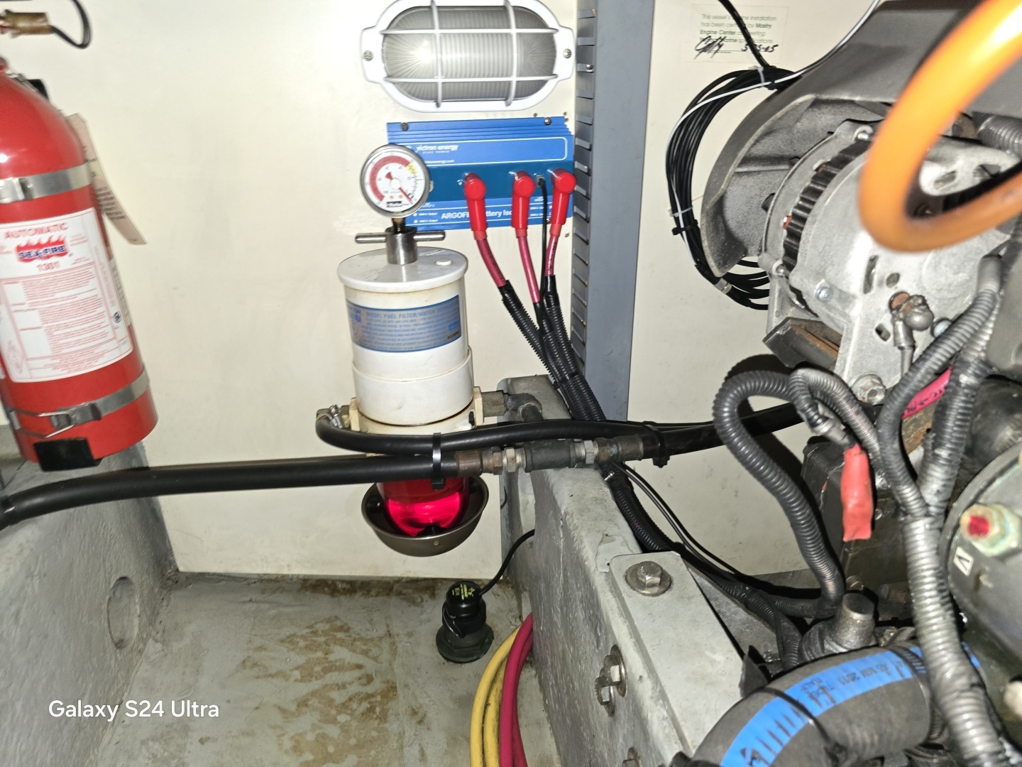 - Racor 900MA fuel filter with a vacuum gauge for the main engine (replaced 4/26)