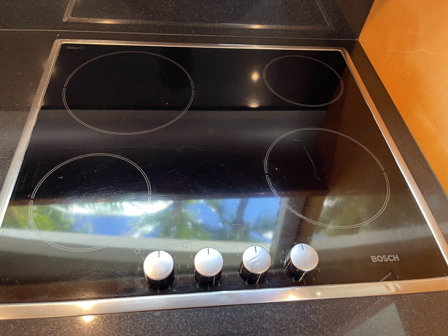 - Four burner pyroceramic cooktop