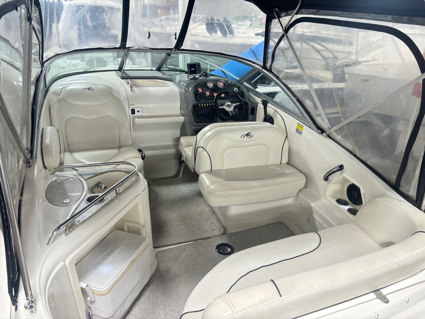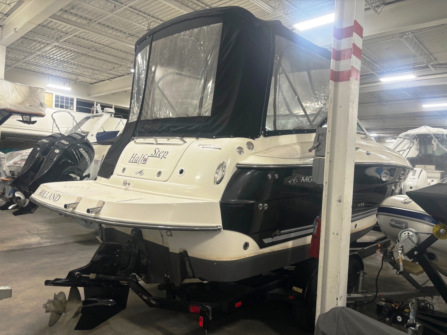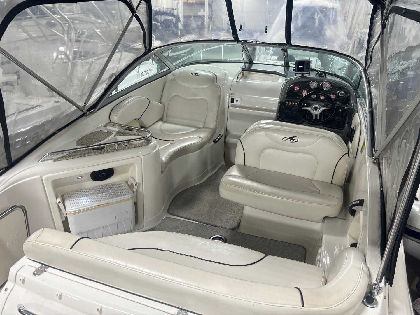 This 2008 Monterey 250 Cruiser is a solid mid‑cabin express cruiser with the right features for weekend boating. Powered by a Mercruiser 350 Mag Mpi with Bravo III drive with 621 hours, it delivers dependable performance and an easy cruising experience. A fully enclosed camper top keeps the cockpit comfortable in all weather. This boat has a Garmin Plotter, Stereo, Vac U Flush Head, Windlass, Refrigerator, 2 Batteries and more. The Engine was just serviced and the drive was pulled, painted and serviced. Also includes a very nice 2 axle Phoenix Trailer. The boat should be good to go mechanically and the cabin and engine compartment is clean, the exterior could use a buff and wax. This boat is priced aggressively and should represent a good value. Call or email us for all the details!