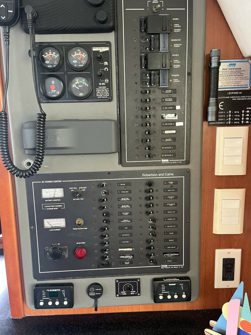 The vessel runs a full lithium electrical system with substantial solar generation capacity. Key components: