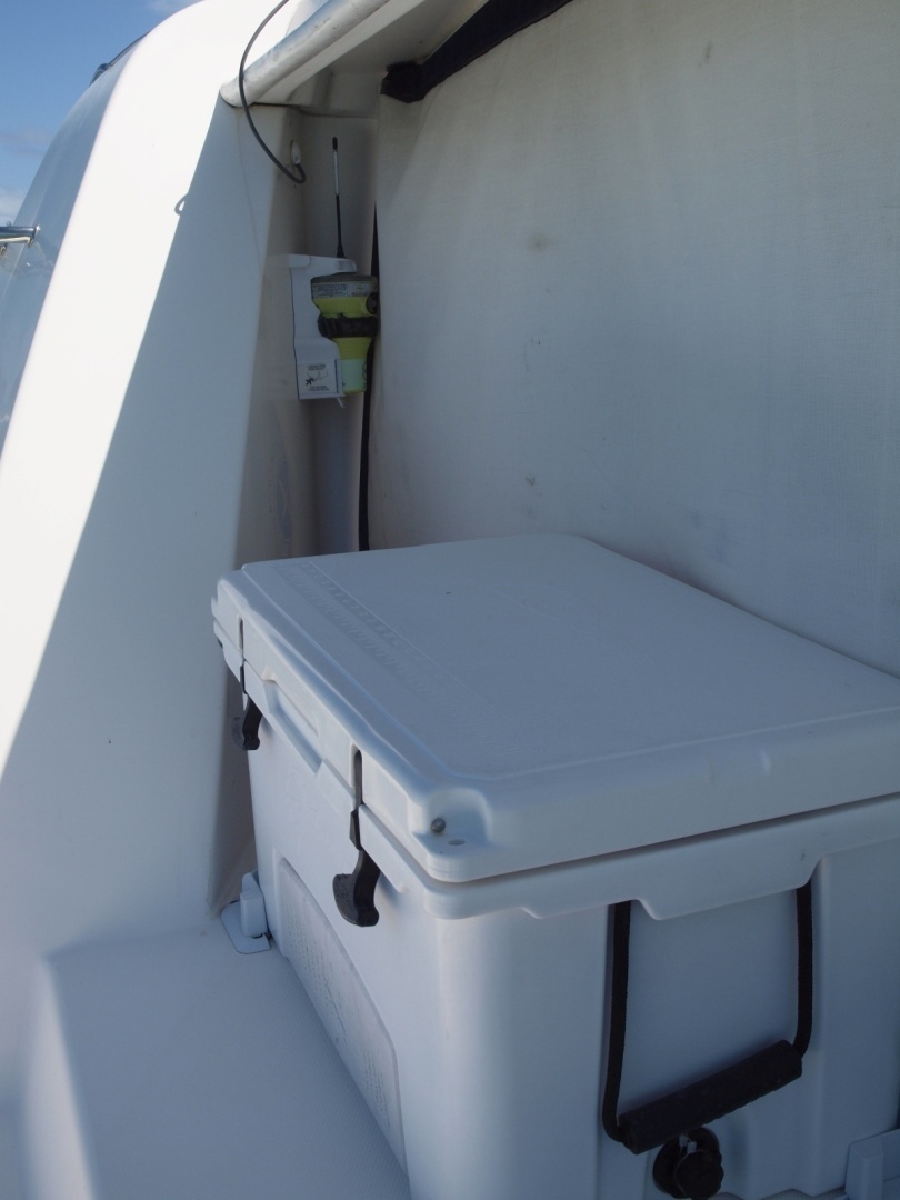 - West Marine 72" DockBox mounted to aft transom for additional fuel/equipment storage
