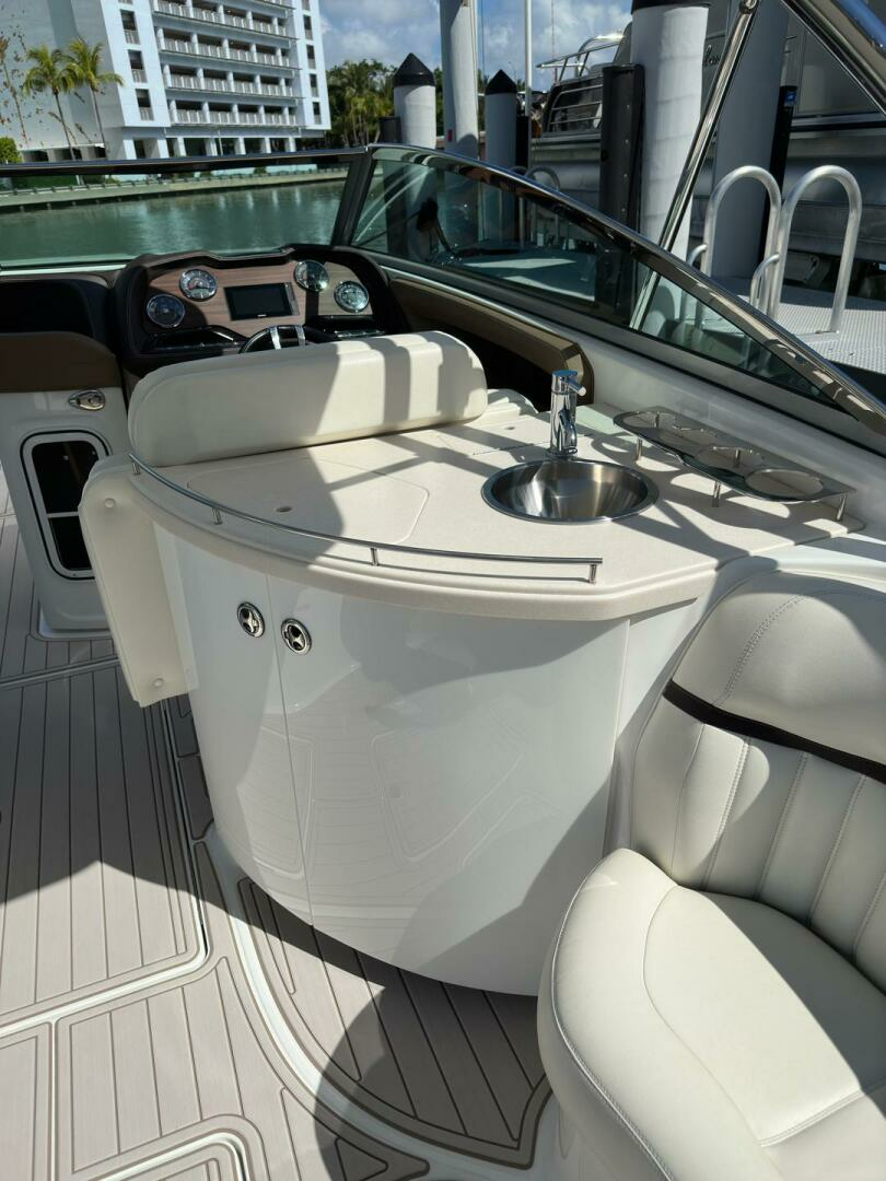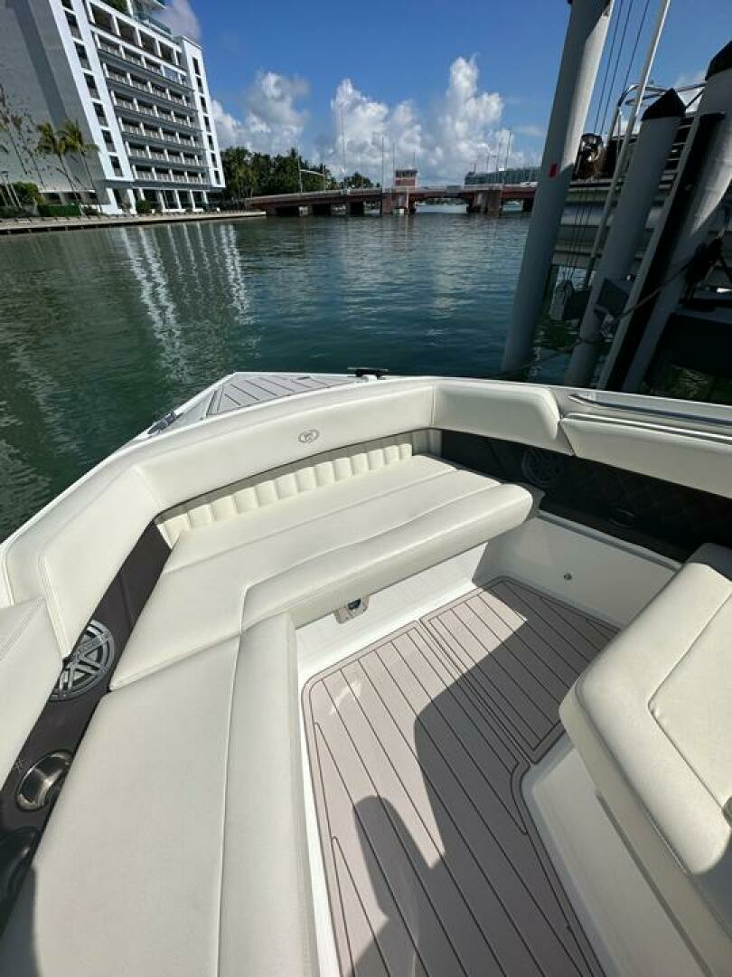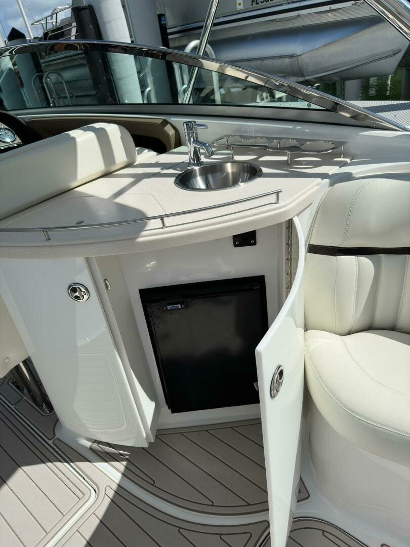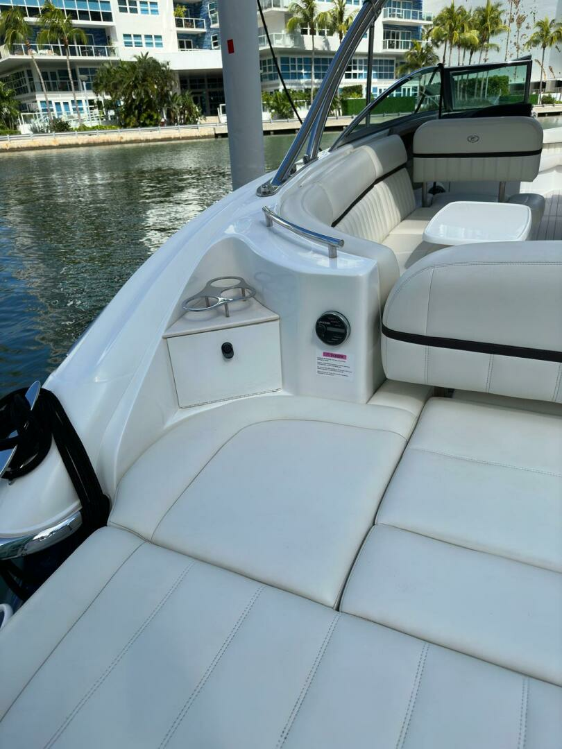 This Cobalt 336 is a high-end performance cruiser which combines luxury, comfort and speed. Dependable on the open water with plentiful deck space for family and friends during the day or a comfortable haven for a couple on overnite excursions. The options abound! Her layout accommodates up to 12 passengers while underway and her optional hardtop offers shaded lounging. Complete with rockin' JL Audio System, swim platform with flip down swim step, and toe-friendly deck, this boat is ready for action!
