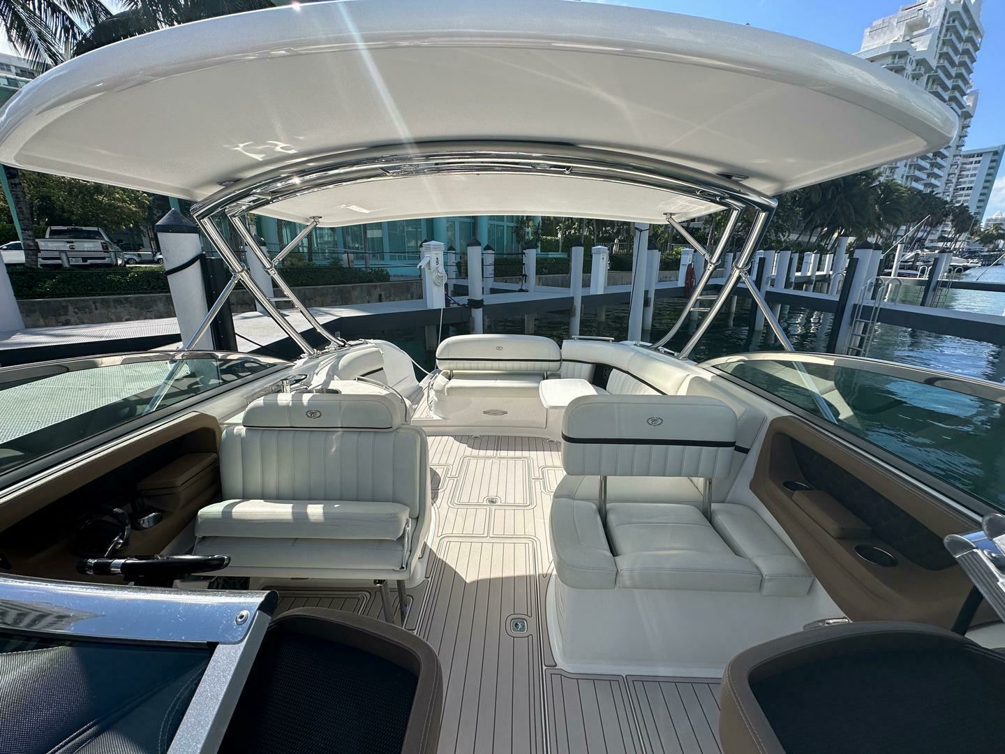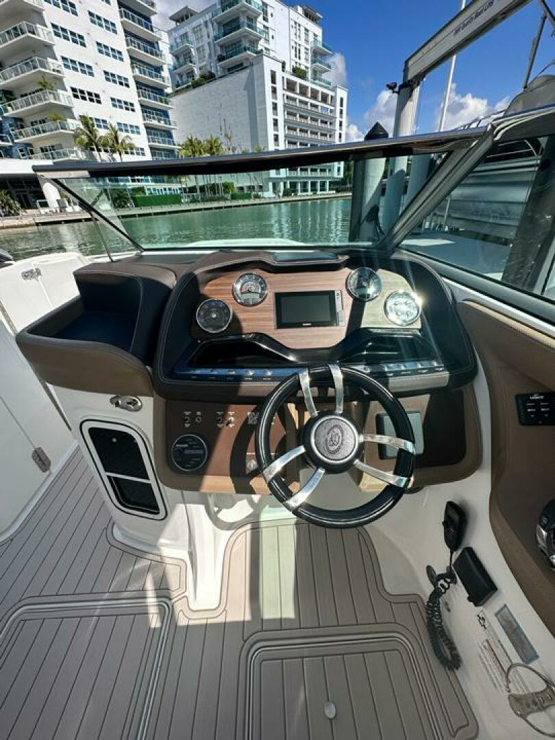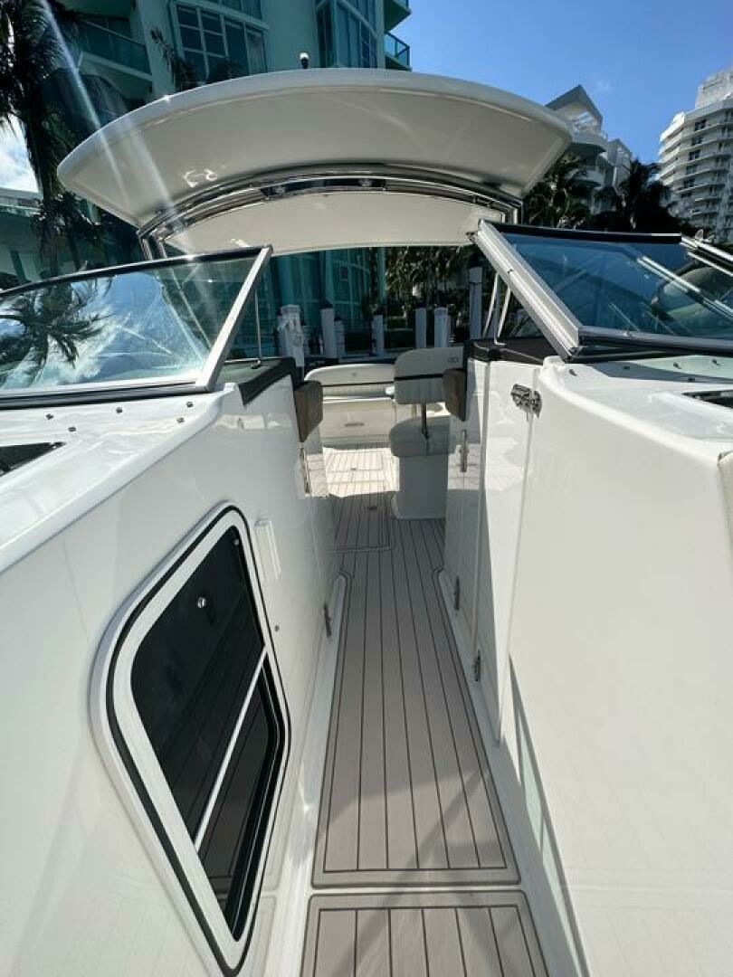 This Cobalt 336 is a high-end performance cruiser which combines luxury, comfort and speed. Dependable on the open water with plentiful deck space for family and friends during the day or a comfortable haven for a couple on overnite excursions. The options abound! Her layout accommodates up to 12 passengers while underway and her optional hardtop offers shaded lounging. Complete with rockin' JL Audio System, swim platform with flip down swim step, and toe-friendly deck, this boat is ready for action!