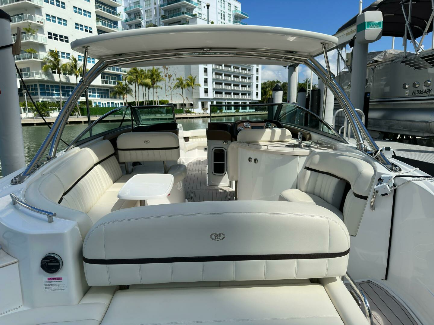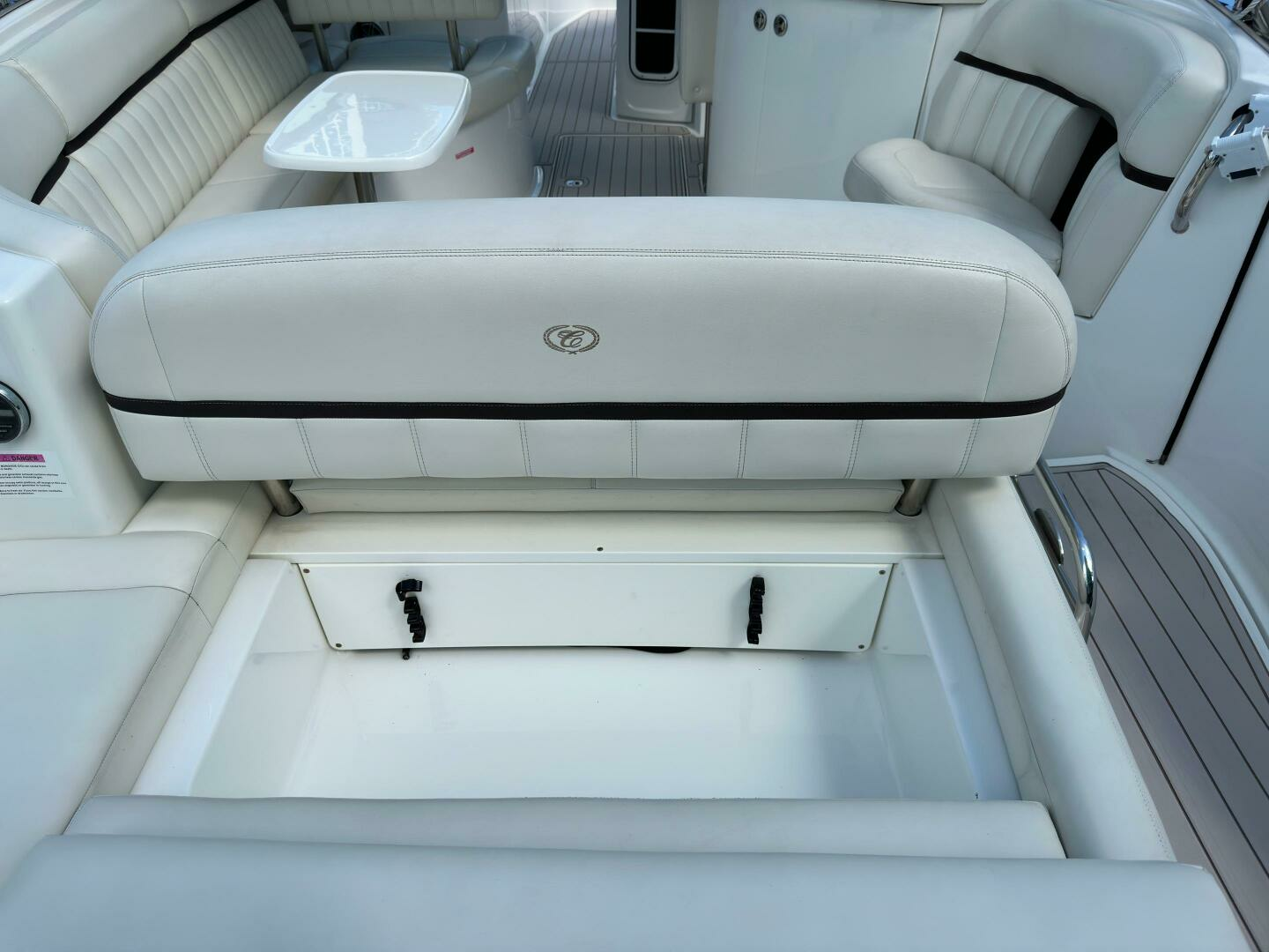 - Dinette table with cockpit receptacle