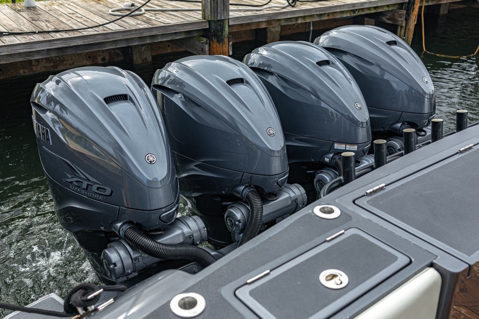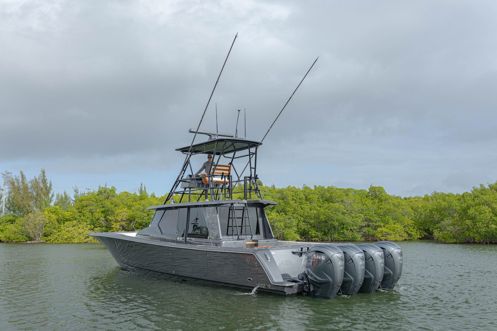 Introducing the Gulf Crosser 52, a stunning pilothouse center console that combines elegance with performance. This impressive vessel measures an overall length of 52 feet, showcasing a sleek fiberglass hull designed for durability and style. Powered by four robust Yamaha outboard engines, each delivering 425 horsepower, this boat promises exhilarating speed and reliability. The thoughtful accommodation includes a cozy cabin and a well-appointed head, ensuring comfort during your voyages. The Gulf Crosser 52 is equipped with essential features, enhancing your boating experience. Its joystick control system simplifies maneuvering, making it a joy to navigate. This center console is perfect for those seeking adventure on the open seas, offering both luxury and performance in one exceptional package.