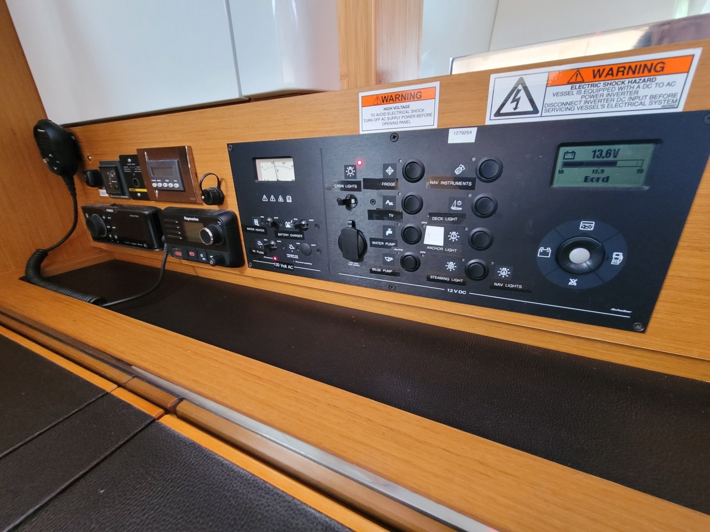 Raymarine, GPS, AIS, VHF, Autopilot, Autopilot remote, Quantum Radar, Depth, wind speed and direction, Fusion stereo with Bose speakers in cockpit and cabin, CD player, TV and Antenna.