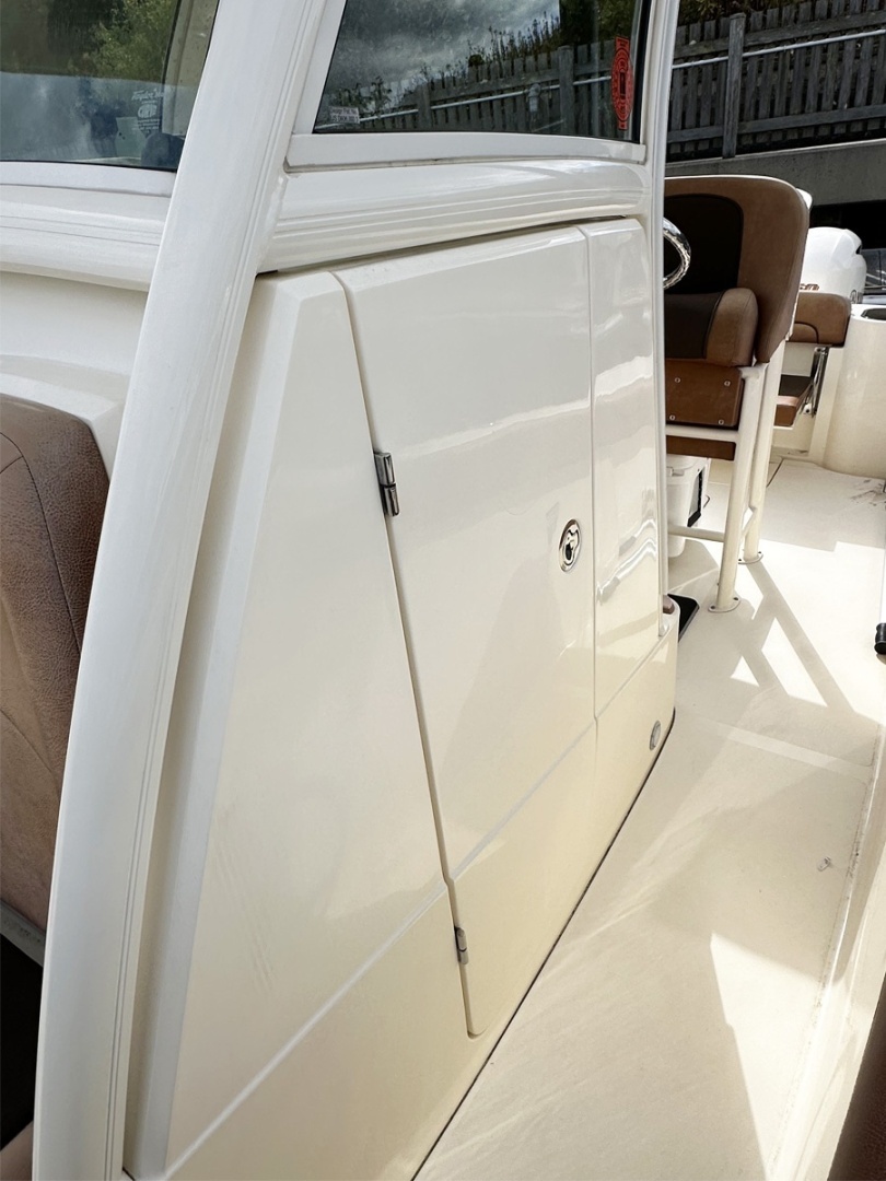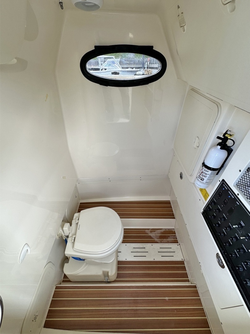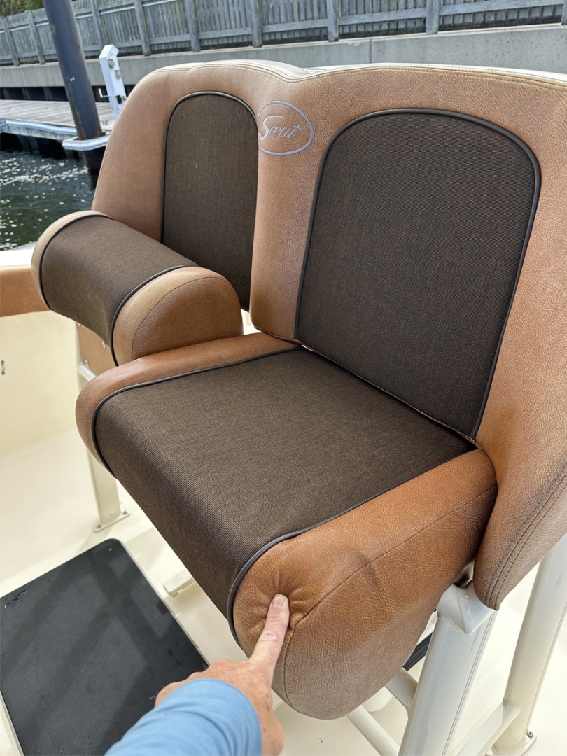 Versatile and well-thought-out design with lots of great seating, cup holders, a fold-down table in the bow and great fishing features including a live bait well that doubles as a cooler. Easy tooperateand dock with twin Yamaha outboards and bow thruster!