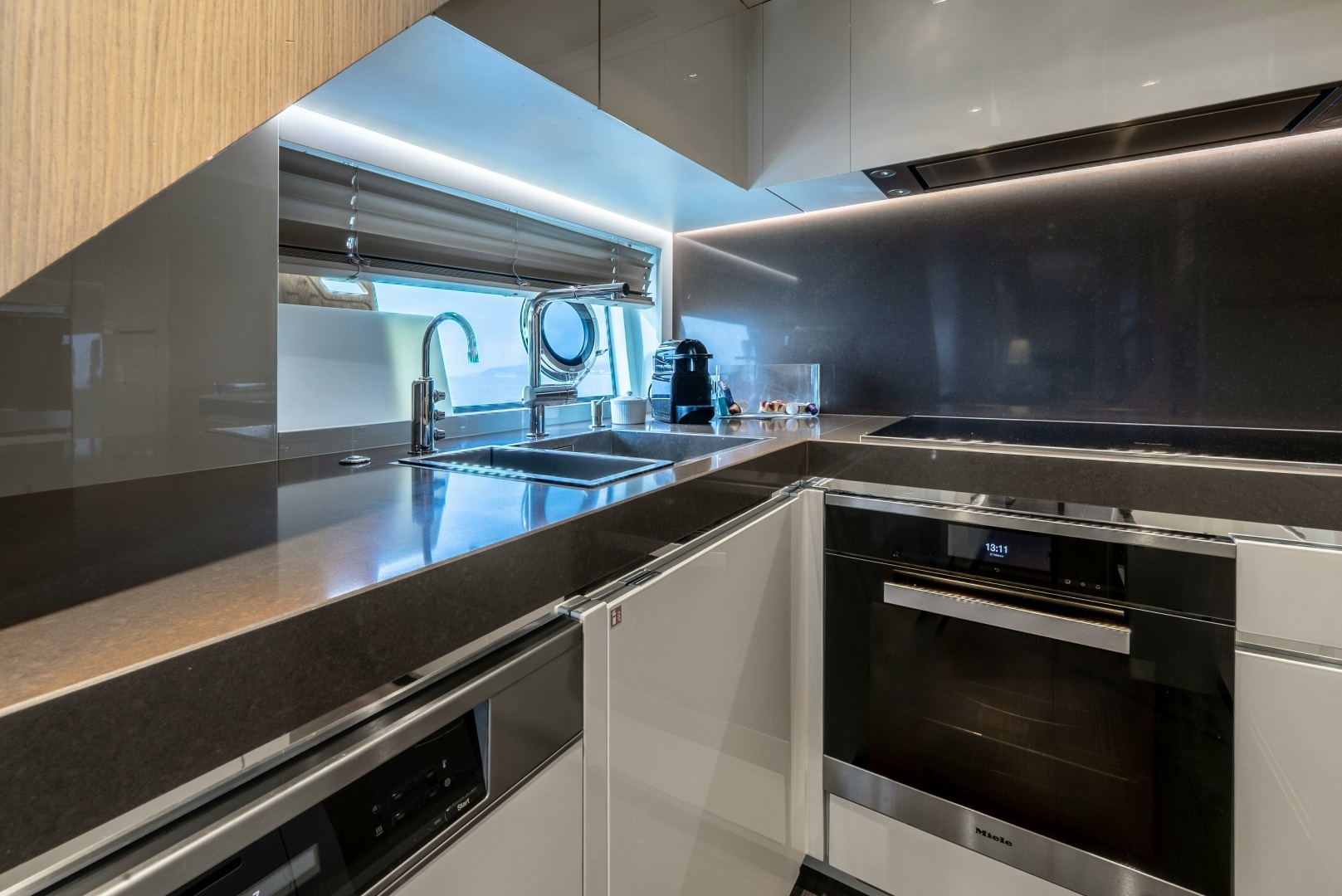 - On deck full beam owner suite with skylight and direct access to a private area on the foredeck