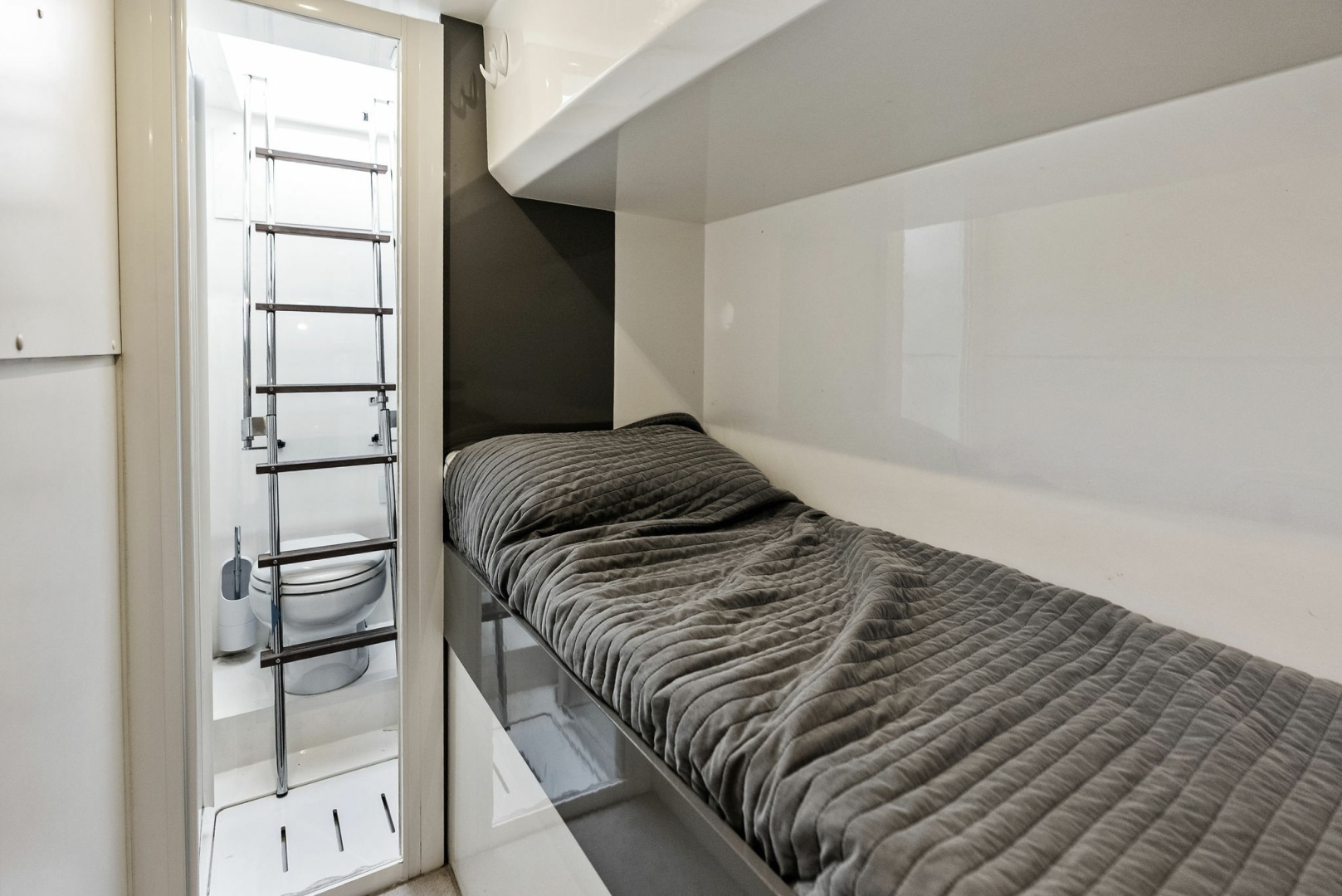 - Access to the storage area (crew cabin) through stainless steel and teak steps