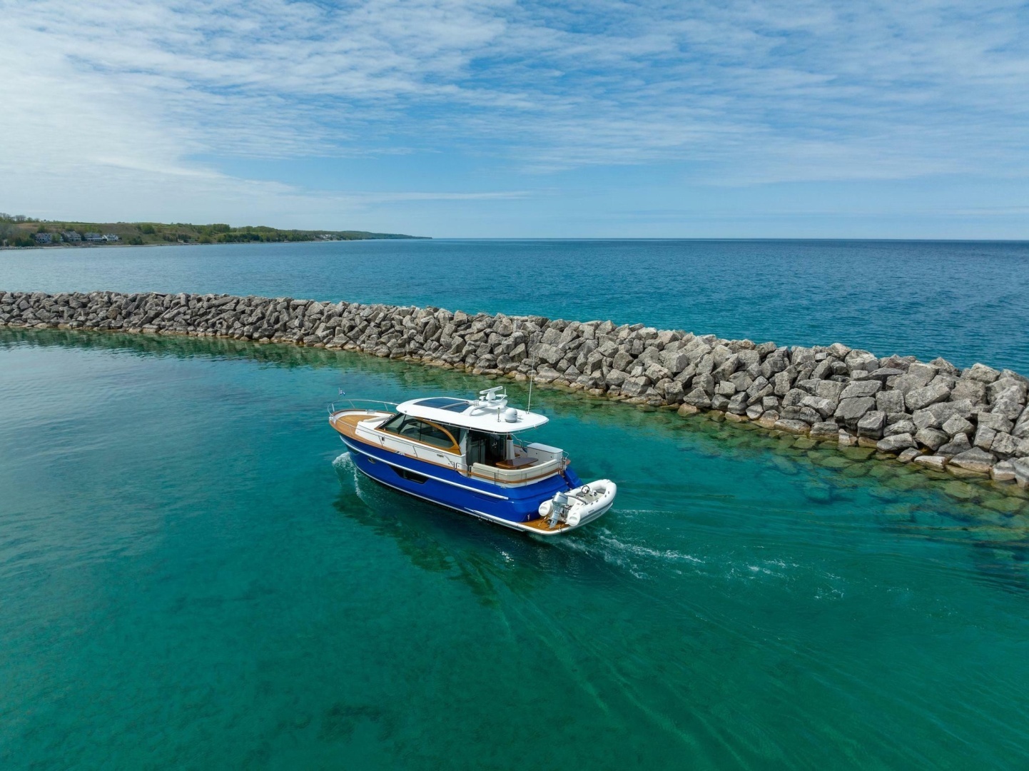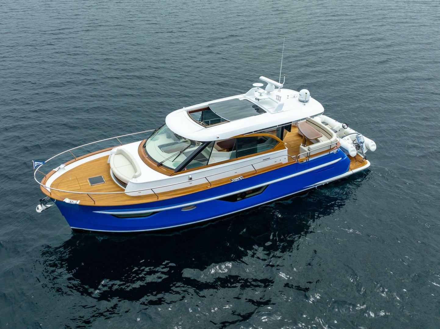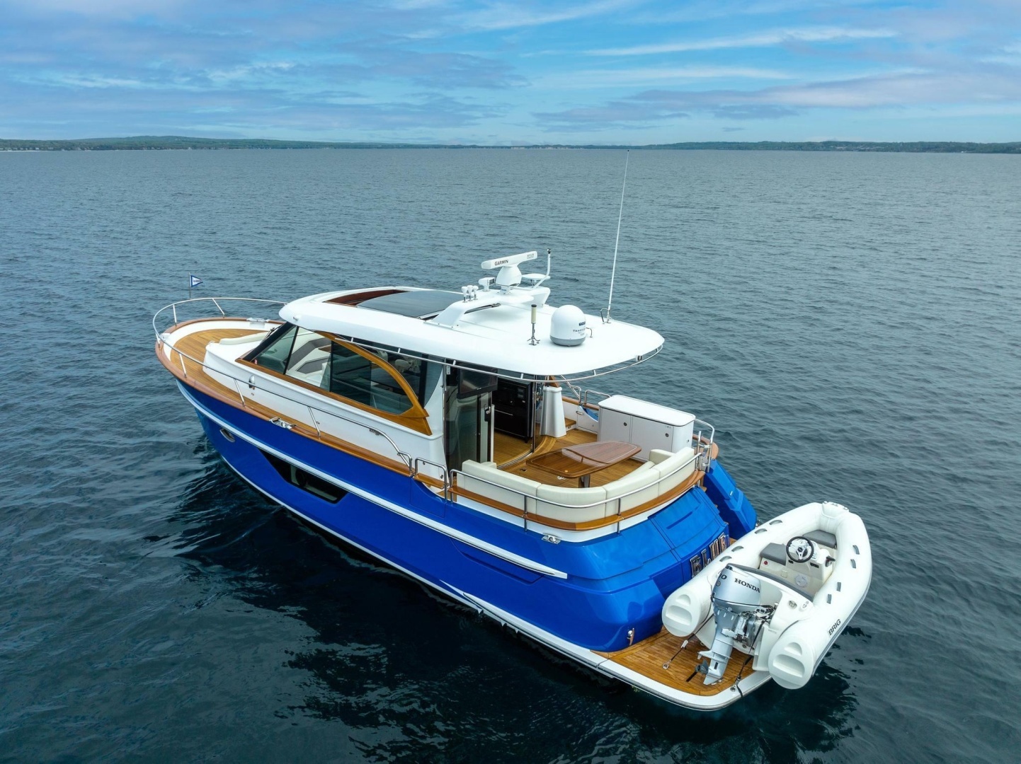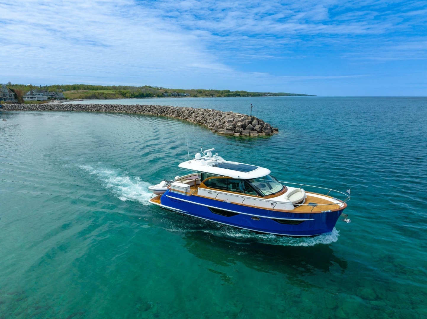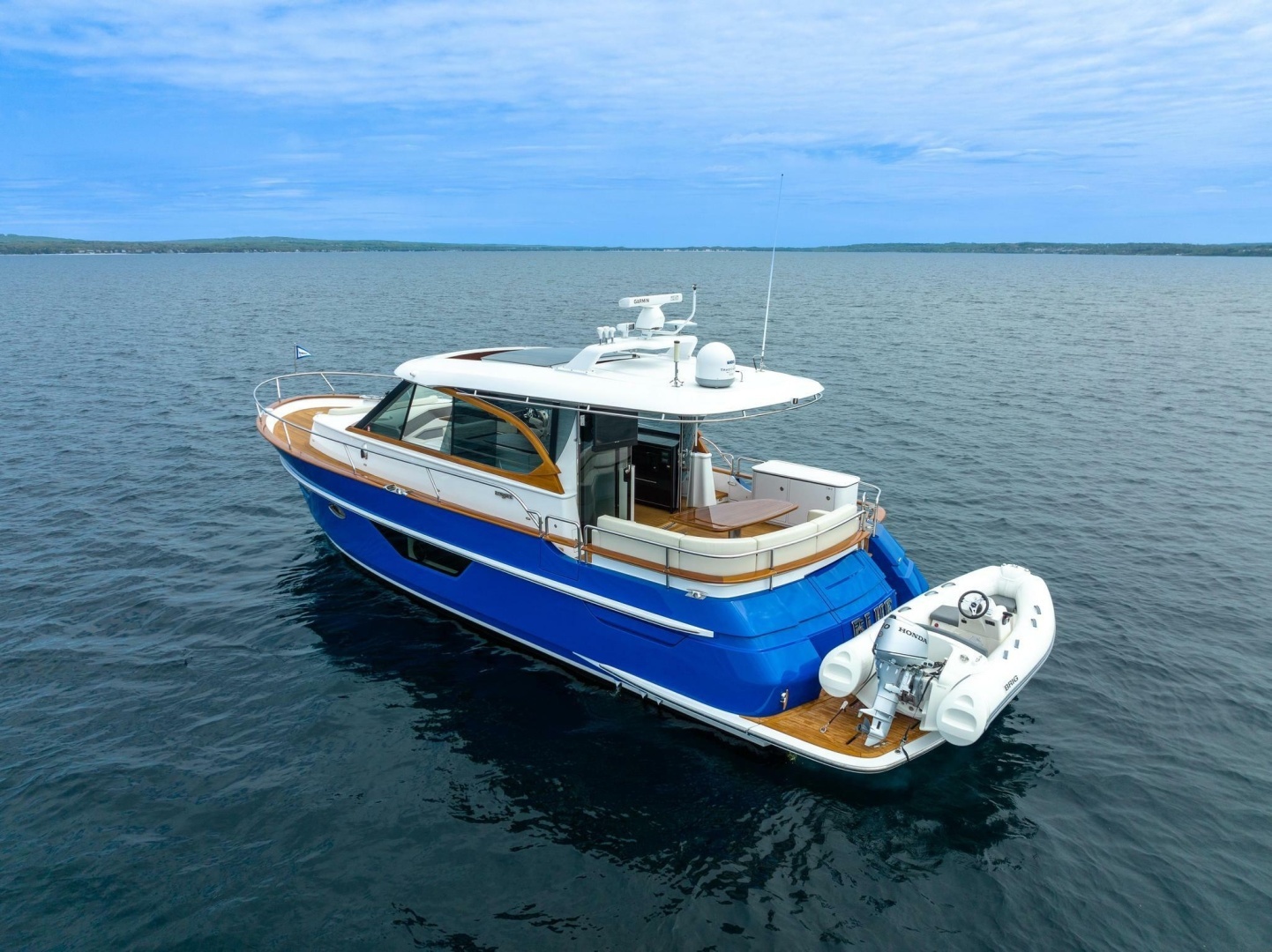 Introducing "Blue" — a 2019 Burger custom yacht in immaculate, freshwater condition. Aluminum hull with under 300 hours, thoughtfully upgraded with factory-installed custom storage and a watermaker for extended cruising. Hands-free handling is effortless thanks to Yacht Controller and Volvo-assisted docking; onboard systems are backed by a Xantrex Freedom inverter/charger. The cockpit features a full opening hardtop and power side windows, plus custom sliding dinghy chocks — an optional tender is available and can be included. A turnkey, low-hour, precision-built vessel that blends classic Burger craftsmanship with modern convenience — ready to cruise.