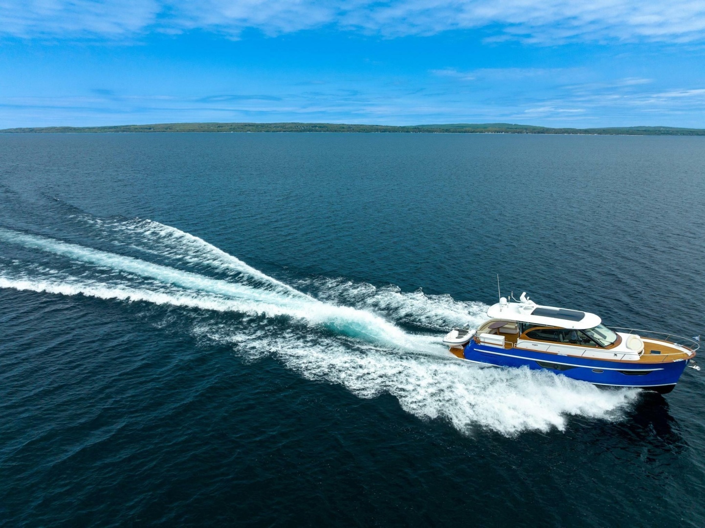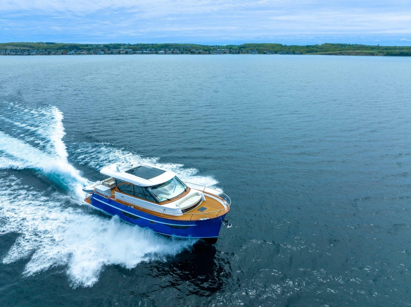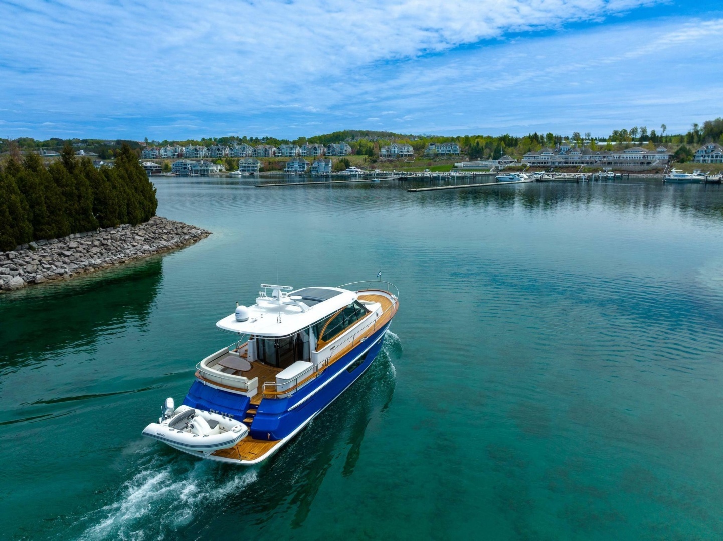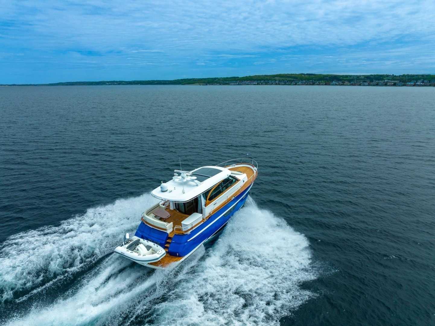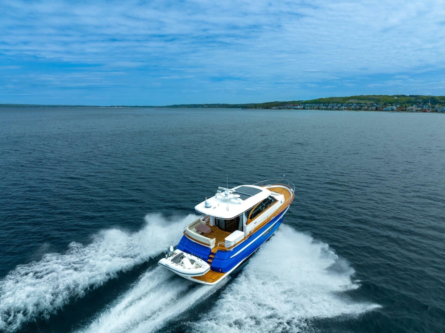 Introducing "Blue" — a 2019 Burger custom yacht in immaculate, freshwater condition. Aluminum hull with under 300 hours, thoughtfully upgraded with factory-installed custom storage and a watermaker for extended cruising. Hands-free handling is effortless thanks to Yacht Controller and Volvo-assisted docking; onboard systems are backed by a Xantrex Freedom inverter/charger. The cockpit features a full opening hardtop and power side windows, plus custom sliding dinghy chocks — an optional tender is available and can be included. A turnkey, low-hour, precision-built vessel that blends classic Burger craftsmanship with modern convenience — ready to cruise.