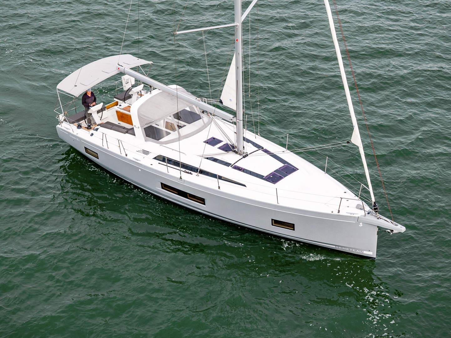 The Oceanis 46.1 is based on a Finot-Conq plan, keeping the distinctive stepped hull of the 51.1. Apart from her performance at sea and the huge amount of space that set this boat apart, this architecture makes optimal use of the cockpit beam. An incredibly efficient deck plan makes her wonderfully safe and easy to use. The furling mast, self-tailing jib and all the halyards and sheets brought back to a single winch at each of the helm stations, make maneuvering simple when short-handed sailing.