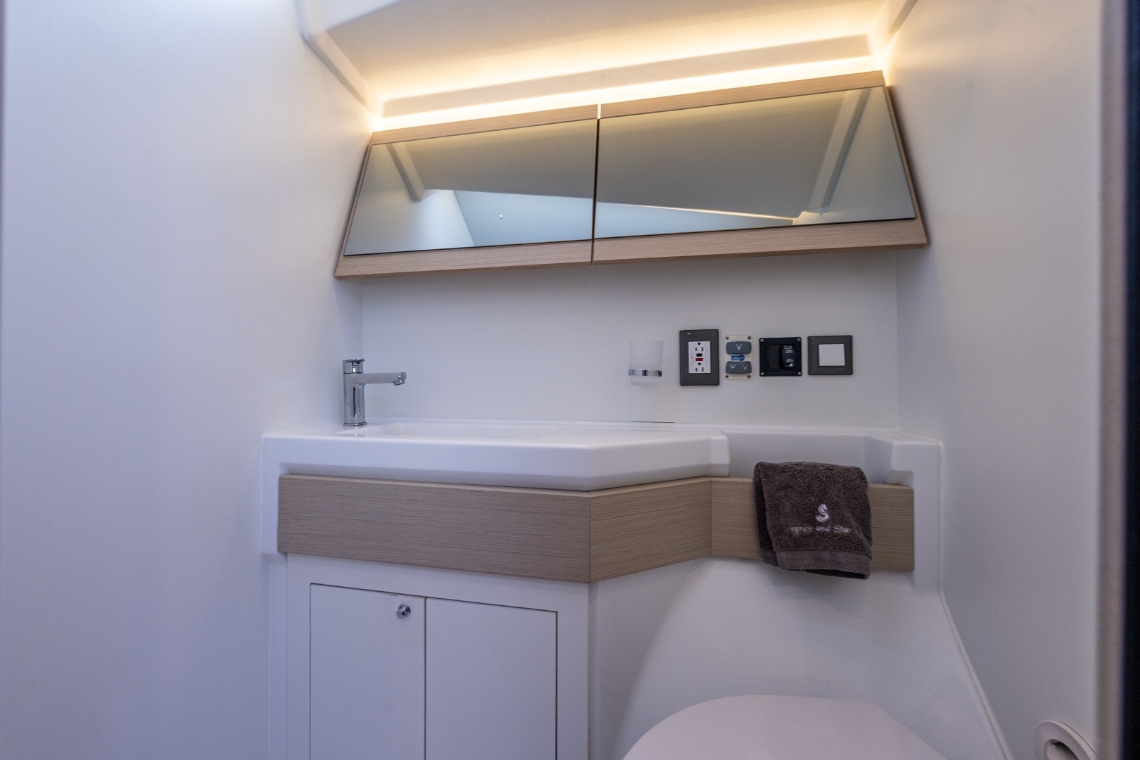Cypress & Star IIboasts all the features of a large cruising yacht, with a rare balance between elegance, usable space and performance. Her stepped hull opens up an incredible amount of space inside and yet her seakeeping performance is still impressive.