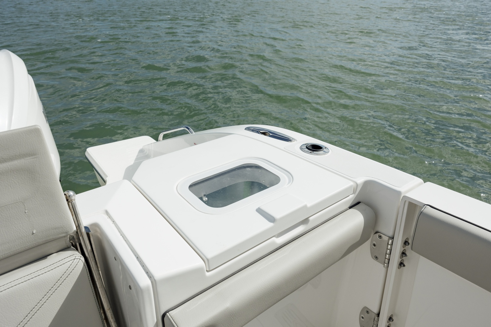 - Molded Forward Bow Seating with Insulated Storage Below, Electric Hinged Forward Facing Backrests for Port and Starboard Seats