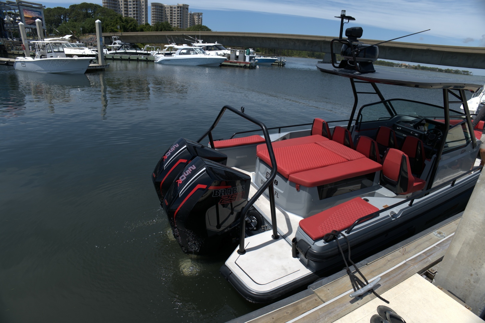 Step aboard the highly sought-after 2023 Axopar 28 Brabus Shadow 500, a striking blend of Scandinavian design, BRABUS performance styling, and next-level versatility. Built on the proven Axopar deep-V hull and enhanced with BRABUS refinement, this 28-foot sport cruiser delivers an unmatched combination of speed, comfort, and head-turning aesthetics. Powered by twin Mercury outboards producing a combined 500 horsepower, this Shadow 500 offers exhilarating performance with top speeds exceeding 50 knots, along with razor-sharp handling and impressive offshore capability. Whether you’re cruising the coastline, island hopping, or entertaining guests at the sandbar, this boat is engineered to perform.