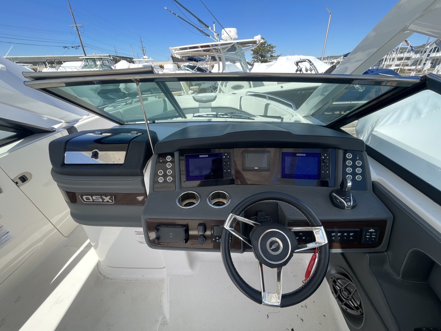 Outboard power, plentiful seating and luxurious accommodations - the 280 OSX from Chaparral. The 280 OSX comes standard with two 7" Multi-Touch displays that are angled for perfect viewing and accessibility. Rounding out the package, each 280 OSX is outfitted with a premium stereo system that includes 6 speakers, Bluetooth connectivity, USB and Auxiliary port hookups as well as an included Sirius XM satellite radio tuner and antenna.