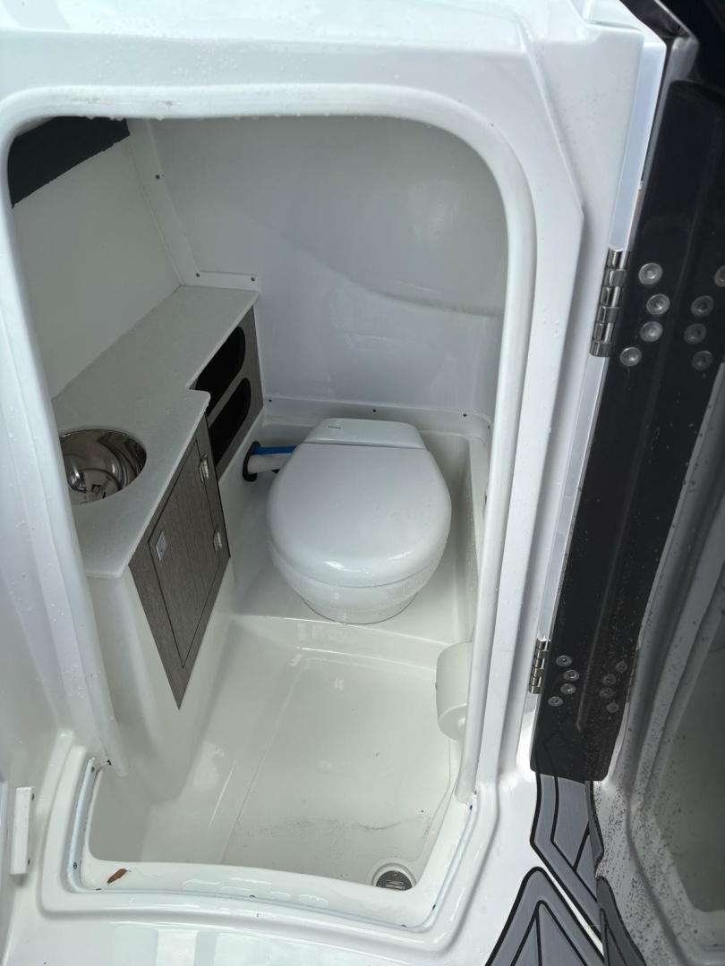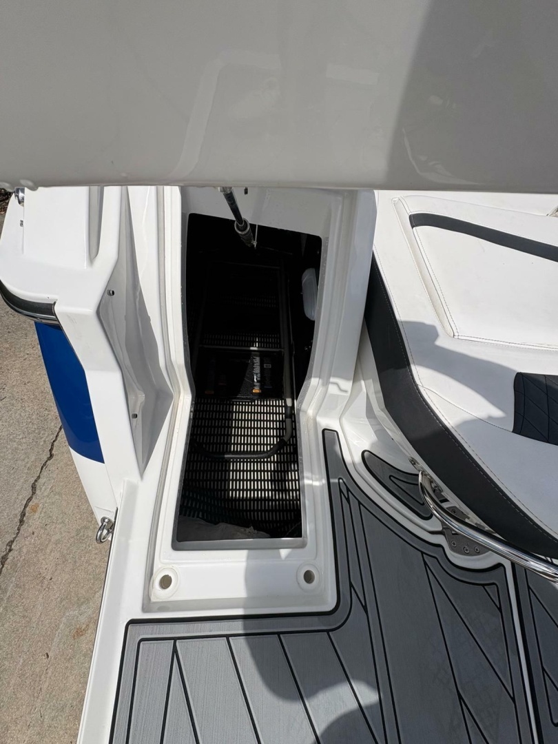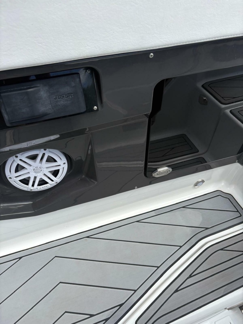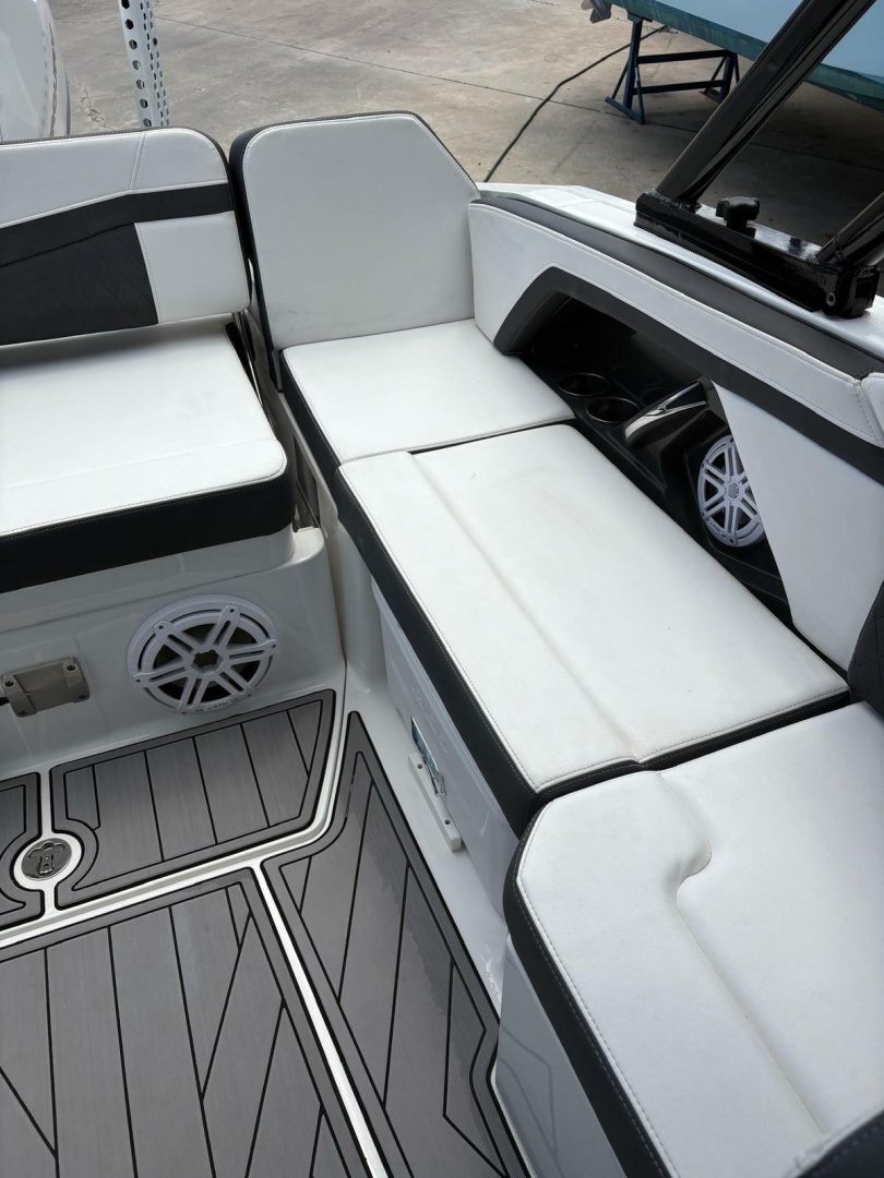 Step aboard and you’ll find premium finishes throughout—plush seating, a spacious cockpit layout, and thoughtful features designed for entertaining. Highlights include apremium stereo system, wet bar, bow filler cushions, underwater LED lighting, and a power towerfor watersports. TheSimrad GPS/sonarkeeps you confidently navigating, while theelectric headadds convenience for longer days on the water.