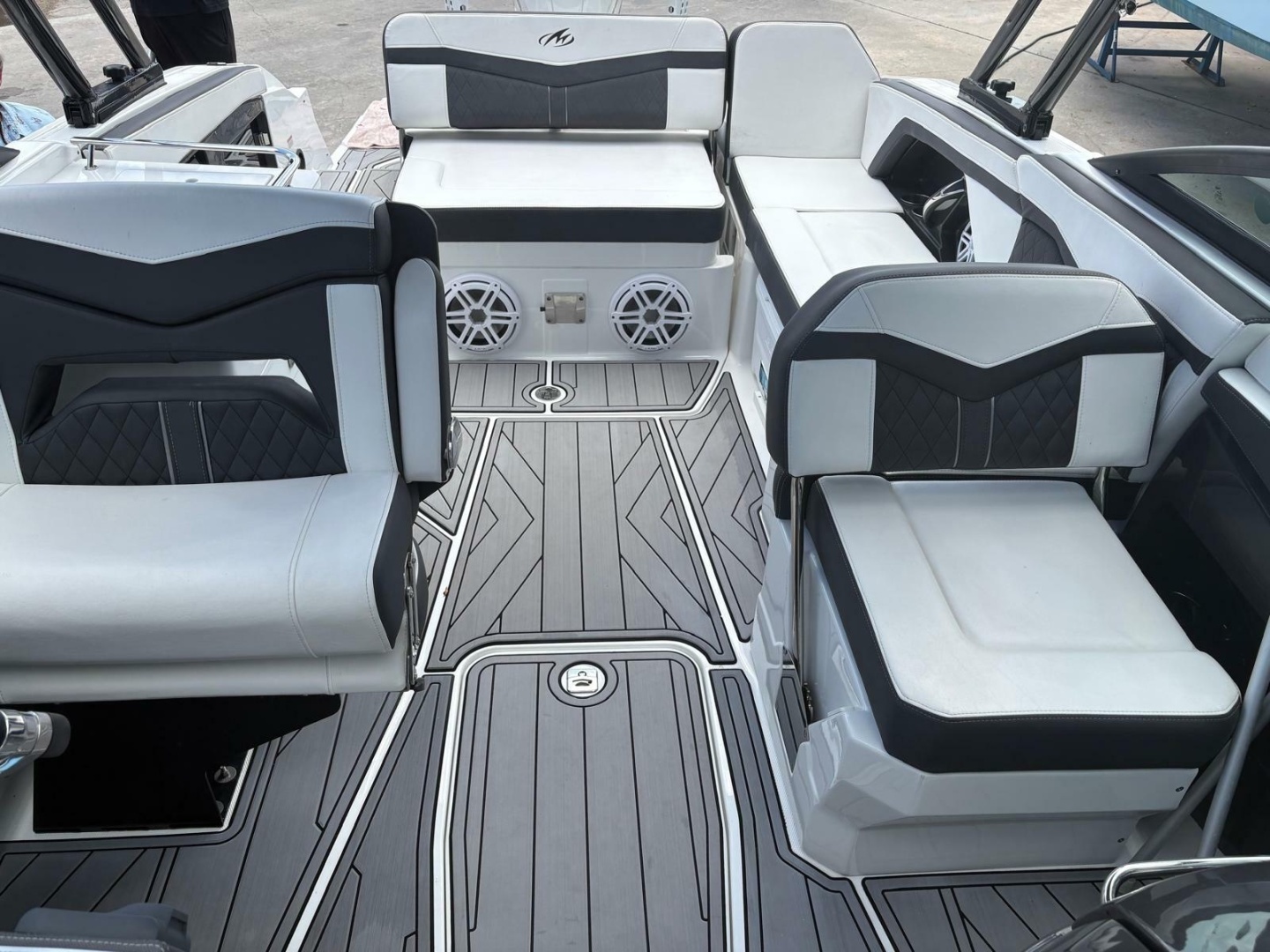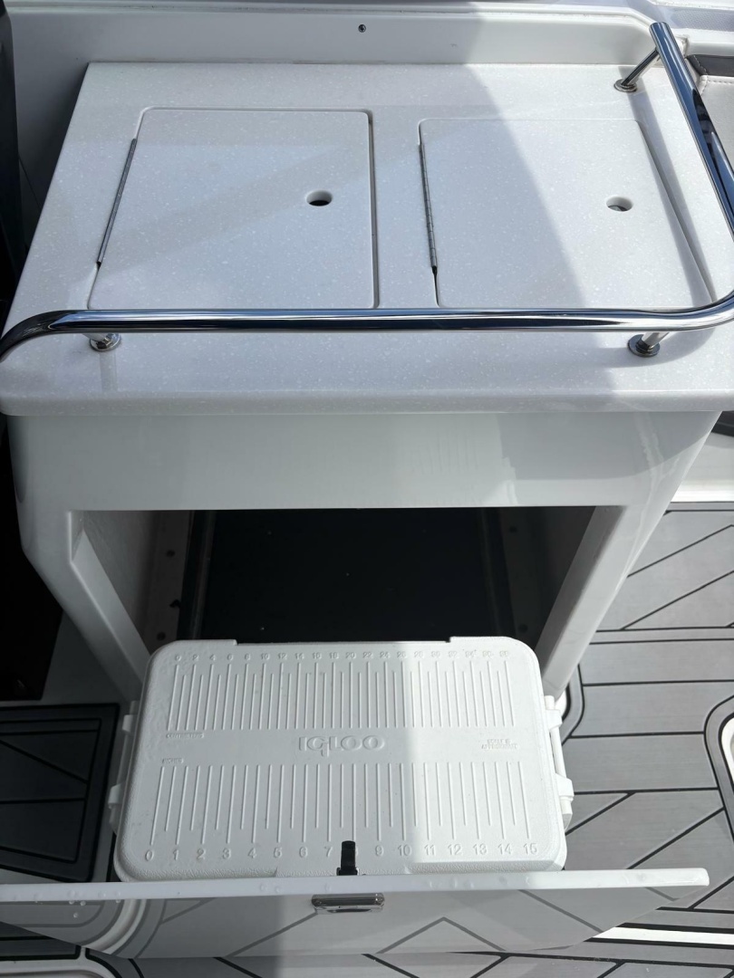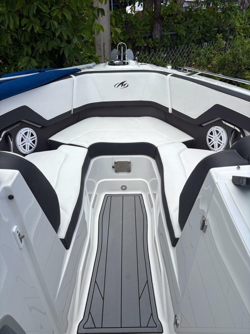 Step aboard and you’ll find premium finishes throughout—plush seating, a spacious cockpit layout, and thoughtful features designed for entertaining. Highlights include apremium stereo system, wet bar, bow filler cushions, underwater LED lighting, and a power towerfor watersports. TheSimrad GPS/sonarkeeps you confidently navigating, while theelectric headadds convenience for longer days on the water.