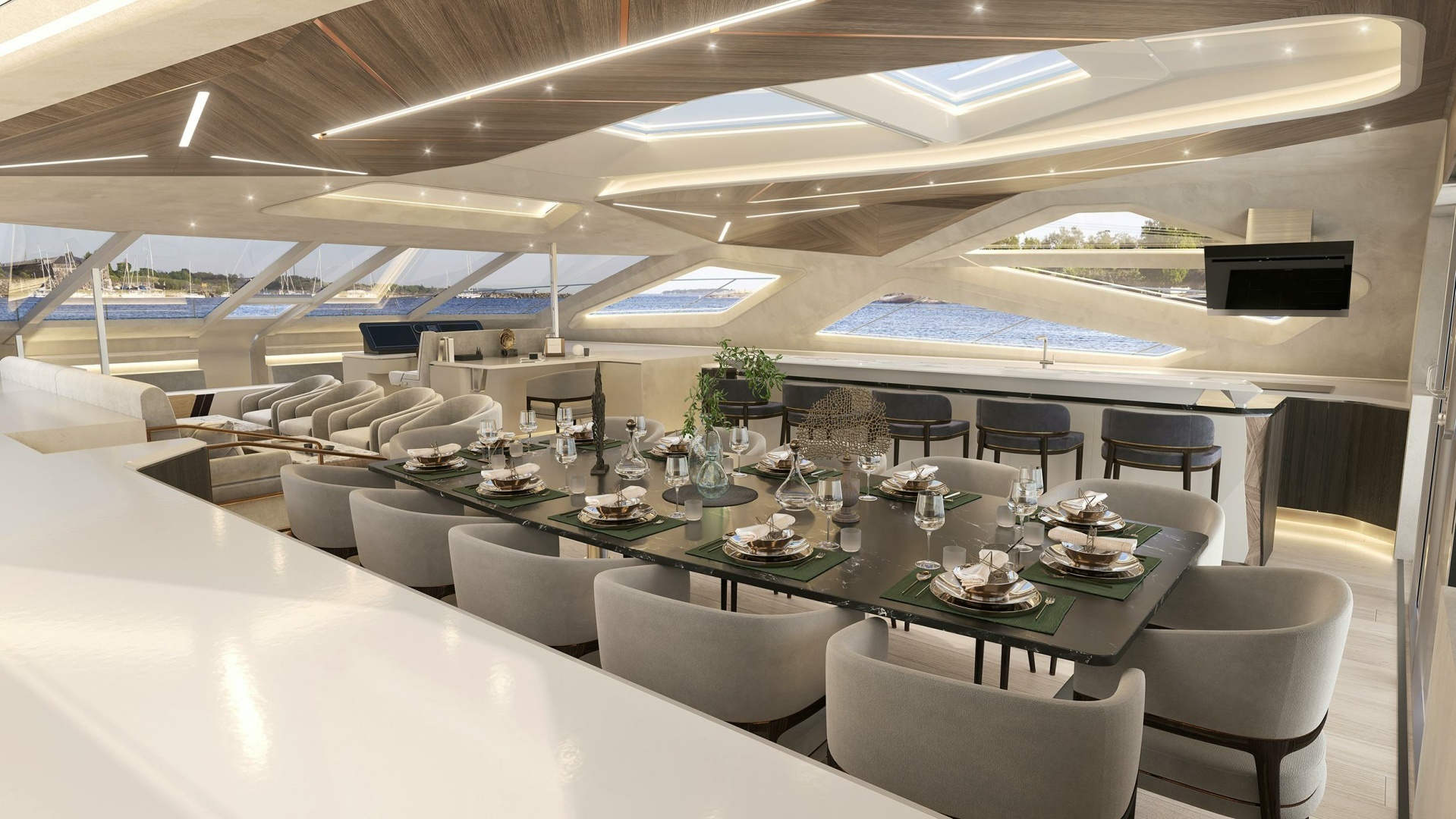LANIAKEA is under construction at Latitude Yachts and due for delivery in 2026. She has been labeled as the world’s first sports catamaran. With a length of 26.75 meters, this innovative vessel combines cutting-edge performance with luxury, promising an unparalleled experience for its owner and guests.